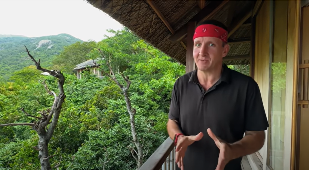 Tới đây, Sonny không khỏi ngạc nhiên vì khu nghỉ nằm biệt lập (chỉ có thể tiếp cận bằng thuyền). Các tuyến đường ẩn mình trong rừng rậm và bể bơi lộ thiên trên những khối đá tự nhiên.
