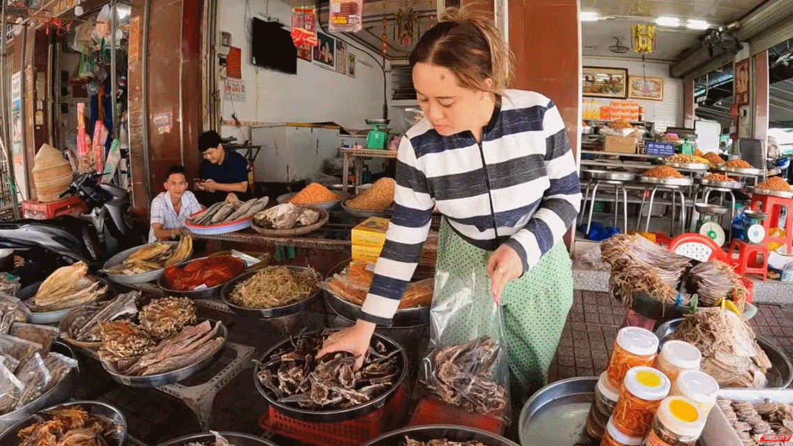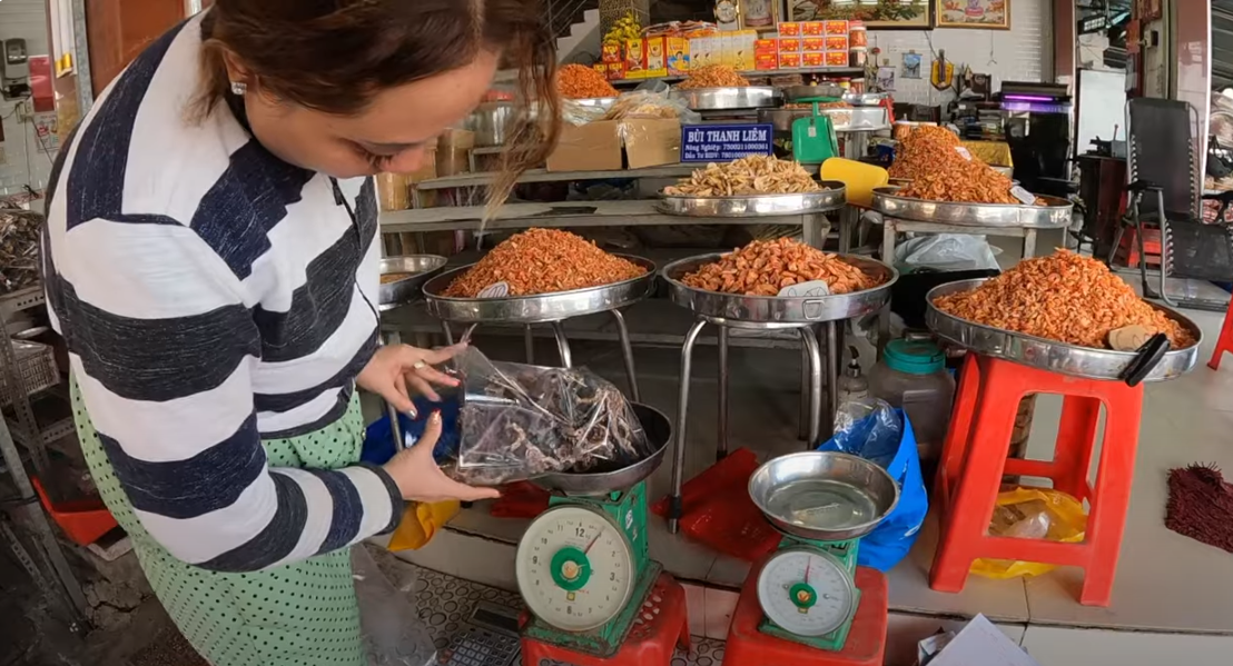 Sau một hồi đạp xe tới nhiều địa điểm như chợ Cà Mau, hỏi thăm người dân xung quanh, cuối cùng Dustin cũng tìm được một cửa hàng có bán cá thòi lòi khô với giá 450.000 đồng/kg. Chàng YouTuber người Mỹ tỏ ra rất phấn khích vì có thể mua được loại cá đặc sản này sau hành trình di chuyển vất vả từ TPHCM tới đây.