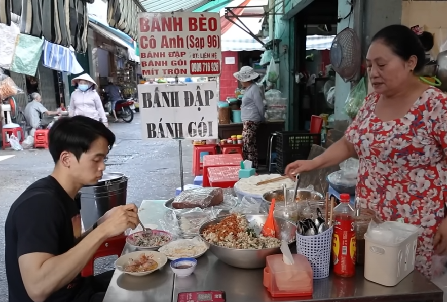 “Mít trộn khá ngon, nếu muốn giảm cân thì chỉ cần ăn món này là đủ”, chàng YouTuber trẻ hài hước nhận xét.