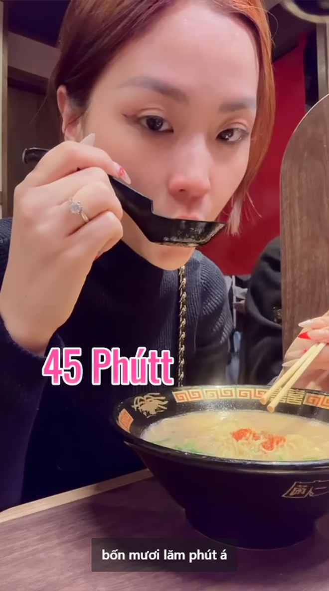 Sau trải nghiệm xếp hàng gần 1 giờ đồng hồ để đợi ăn mì ramen, Diễm Trang phải tự nhận mình "hâm" bởi trước kia cô chưa từng làm như vậy. "Ngày xưa thấy ai đứng xếp hàng vào quán ăn nào đó mình cũng nghĩ họ rảnh ghê, giờ tới lượt mình hâm".