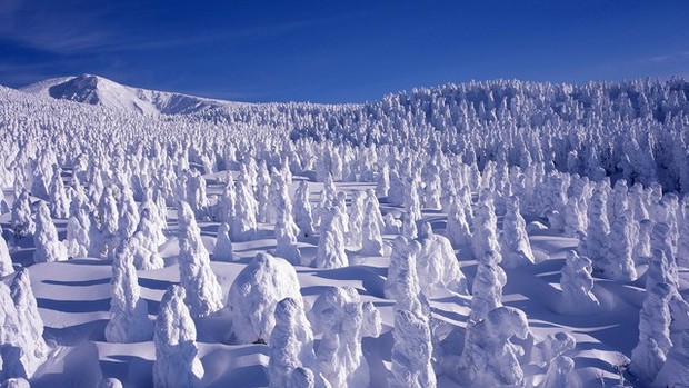 Núi Zao, Nhật Bản: Núi Zao là một trong những ngọn núi nổi tiếng nhất Nhật Bản, nổi tiếng với “quái vật tuyết”. Chúng là những hình thù kỳ lạ xuất hiện vào giữa mùa đông, hình thành sau khi băng bắt đầu tích tụ trên cây và sau đó bị tuyết bao phủ. Toàn bộ khu rừng nhân kỳ lạ này đủ để khiến bất cứ ai phải rùng mình.