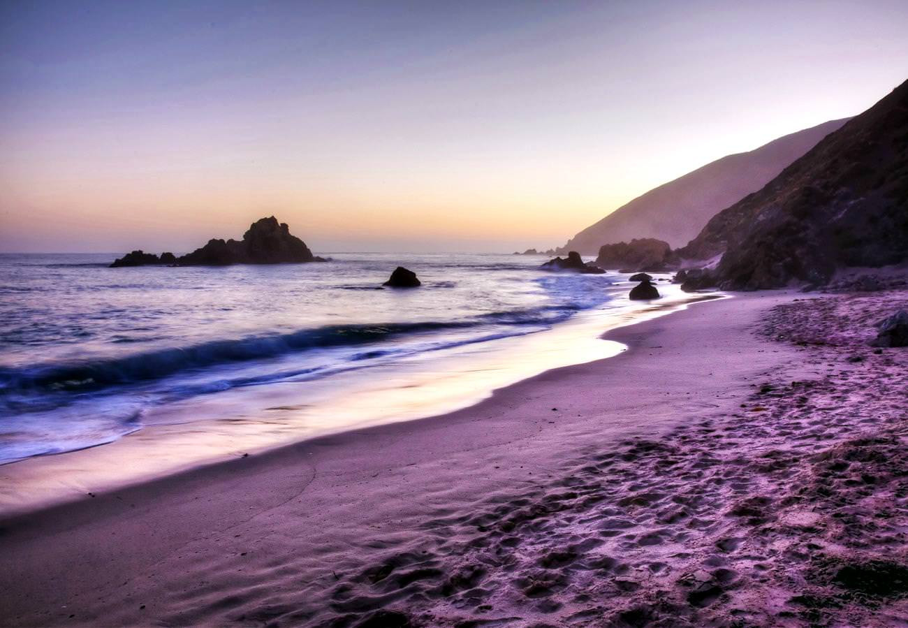 Pfeiffer Big Sur, một bãi biển ở bang California (Mỹ) còn được khách du lịch trên thế giới biết đến với tên gọi 'Bãi biển Cầu vồng'. Nguồn gốc của tên gọi là đến từ hàng tỷ những tinh thể ngọc thạch nhỏ xíu theo thời gian chảy xuống từ những ngọn đồi gần bờ cát hòa lẫn cùng các gợn sóng, dưới tác động của ánh nắng Mặt trời tạo nên muôn vàn màu sắc, khiến bãi biển như biến thành một dải cầu vồng lung linh, rực rỡ.