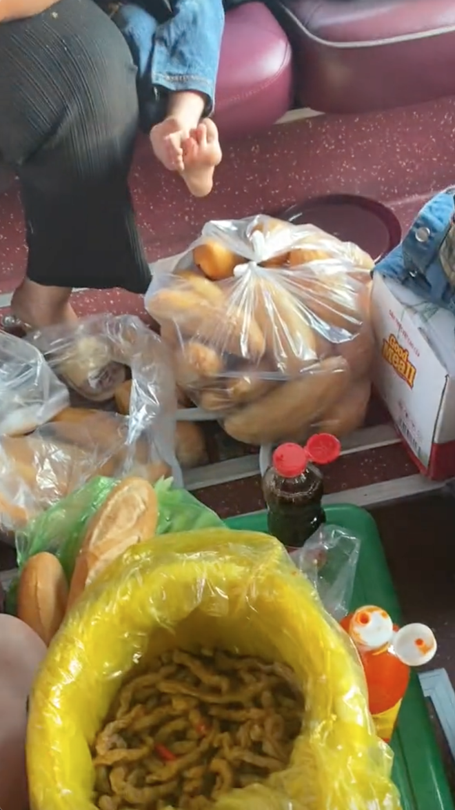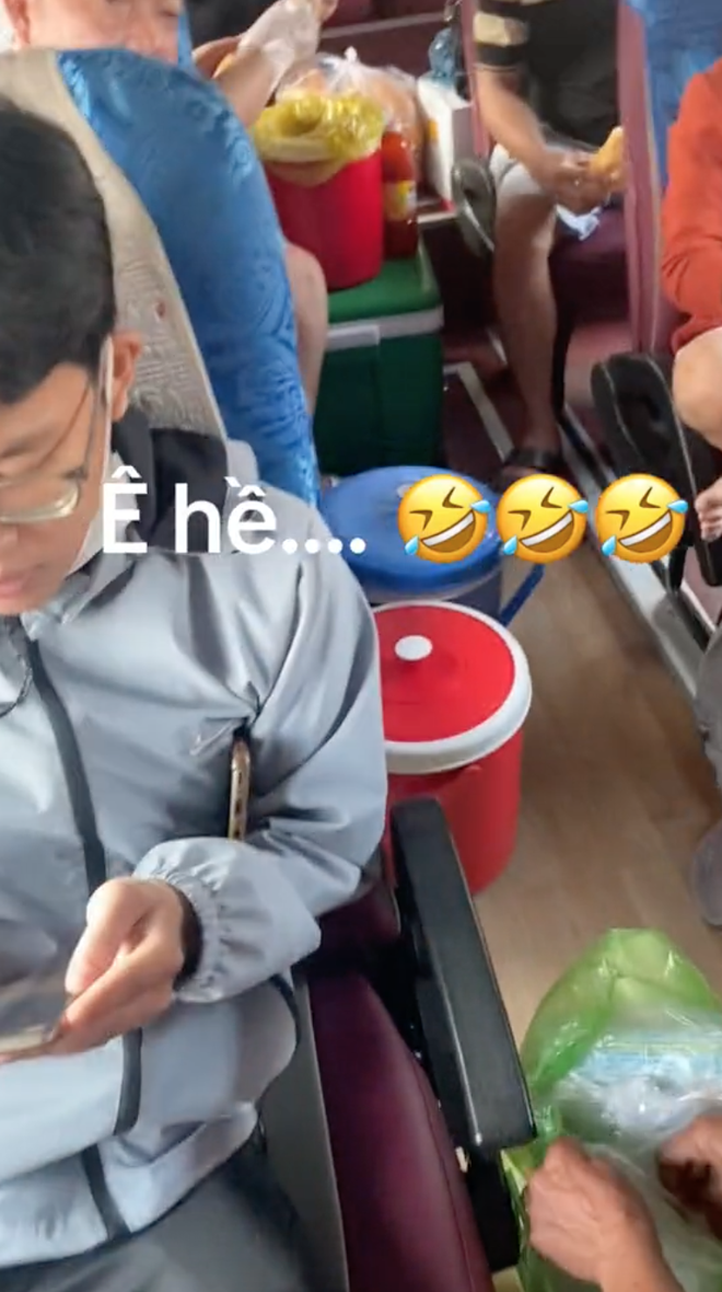 Cứ đi du lịch cùng các bậc phụ huynh (đặc biệt là các bà, các mẹ, các cô bác) là lúc nào cũng vậy, đồ ăn được chuẩn bị "ngập mặt". Vừa lo mọi người trên đường đi sẽ đói, rồi còn để tránh cảnh bị "chặt chém" khi tới địa điểm du lịch nên các mẹ, các dì, các cô còn chuẩn bị từ hôm trước, sáng sớm đã nấu xôi, kho thịt mang đi. Thế là hành trình trên xe đi du lịch của cả nhà đầy đủ đồ ăn, từ ăn no đến ăn vặt, từ ăn chính đến tráng miệng...