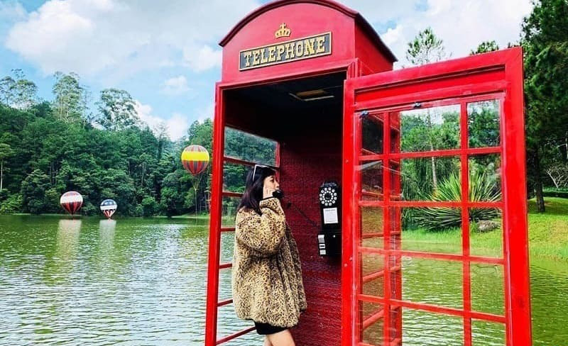Bốt điện thoại với màu sắc châu Âu đầy cổ điển đặt bên hồ nước. Đặc biệt hơn cả là chiếc ghế vô hình được đặt trên mặt nước. Tất cả những điều đó sẽ khiến bạn không thể bỏ qua được để có bức ảnh ảo diệu phải không.