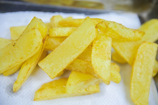 -Phương pháp chiên khoai tây vàng giòn, thơm ngon, giữ được màu sắc tự nhiên.