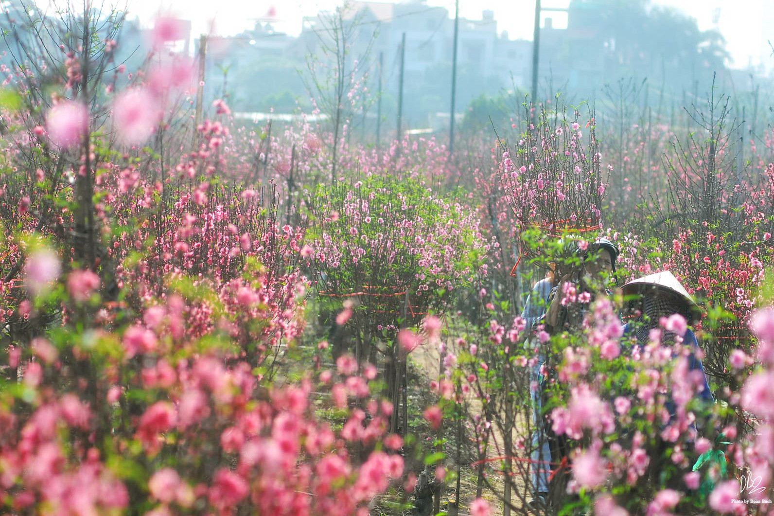 "Những ngày cận Tết khắp làng đào đều ngập trong sắc hồng, sắc đỏ của loài hoa này. Nhìn từ trên cao, ngôi làng như được phủ kín trong màu hoa đào. Đây là nơi tuyệt vời để cảm nhận, tận hưởng không khí rộn ràng, náo nức của ngày Tết", anh Bách chia sẻ.