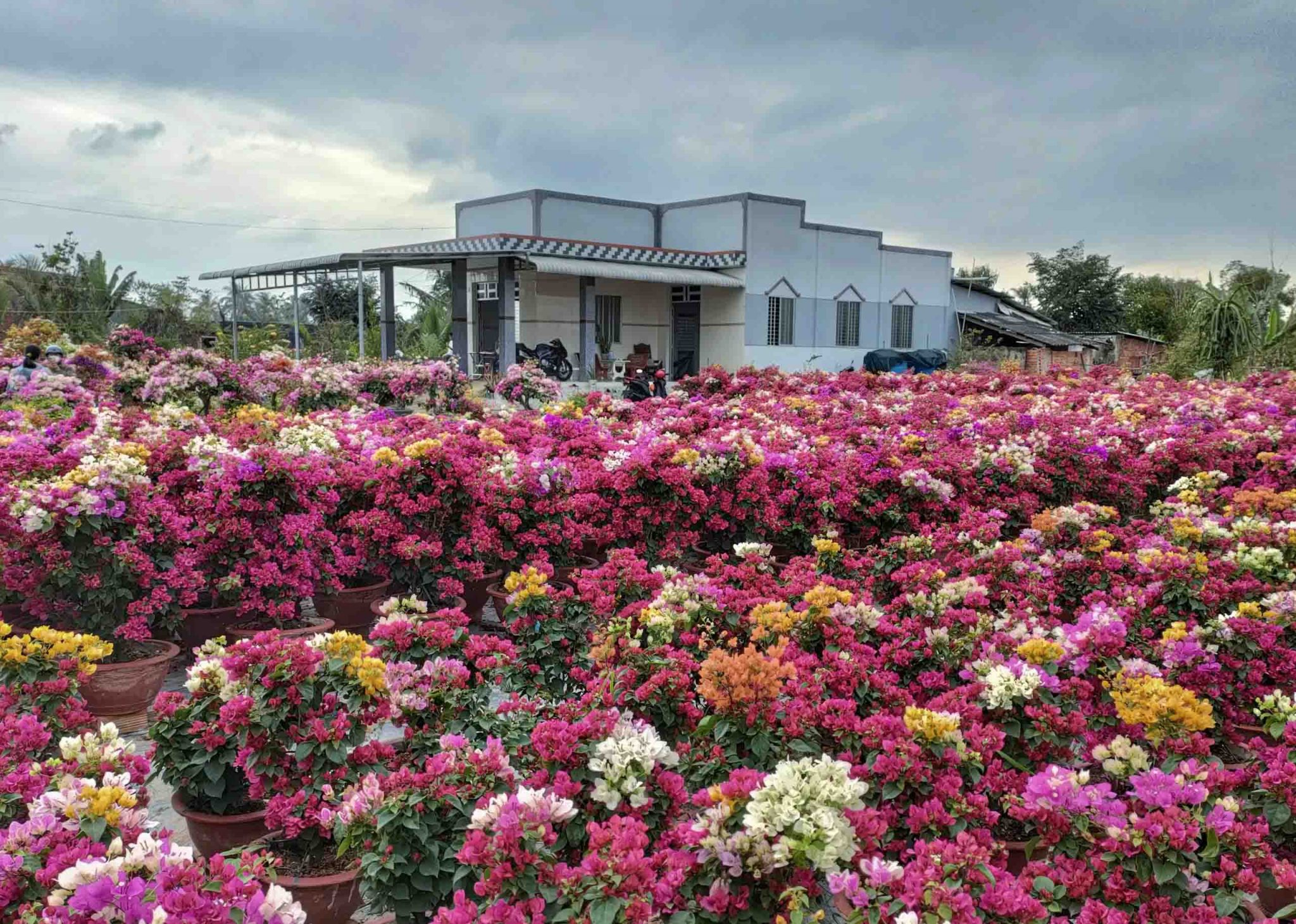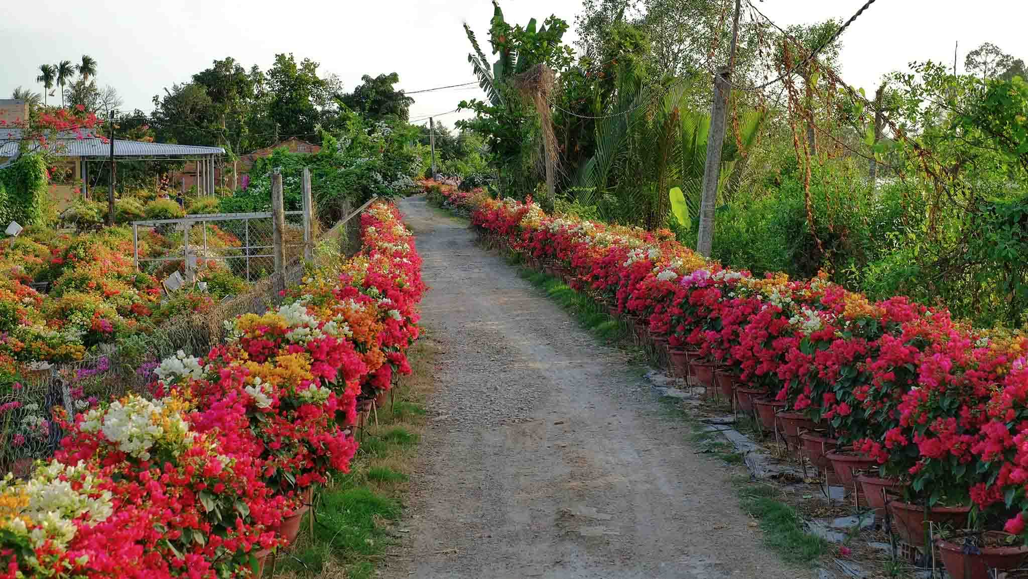 Những ngày giáp Tết Nguyên đán, làng hoa giấy Phú Sơn (huyện Chợ Lách, tỉnh Bến Tre) lại rực rỡ sắc màu, thương lái tất bật vận chuyển hoa đến các địa phương khác để phục vụ người dân chơi Tết.