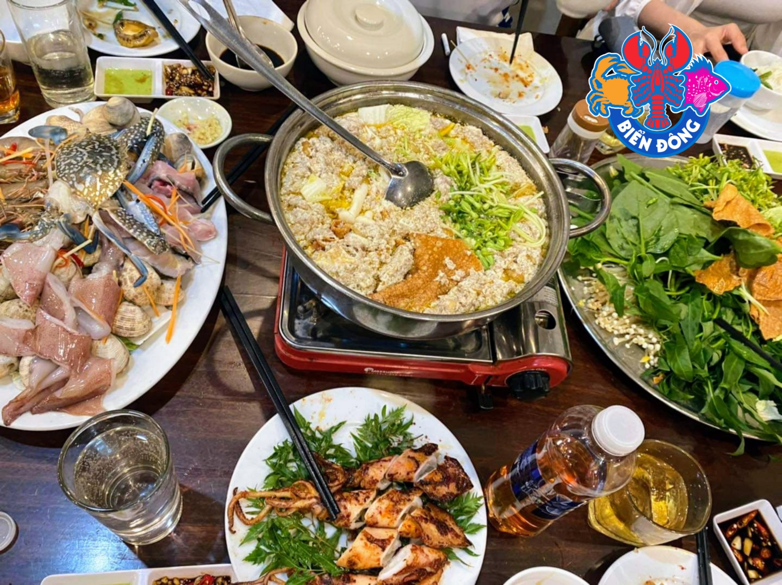 Tại nhà hàng Hải Sản Biển Đông, lẩu riêu cua được nâng lên một tầng hương vị mới khi sử dụng nguyên liệu từ cua biển. Theo đó, những chú cua biển tự nhiên ngay khi vừa đánh bắt sẽ được đem rửa sạch, xay nhuyễn tại đảo để đảm bảo giữ nguyên hương vị tươi ngon nhất.