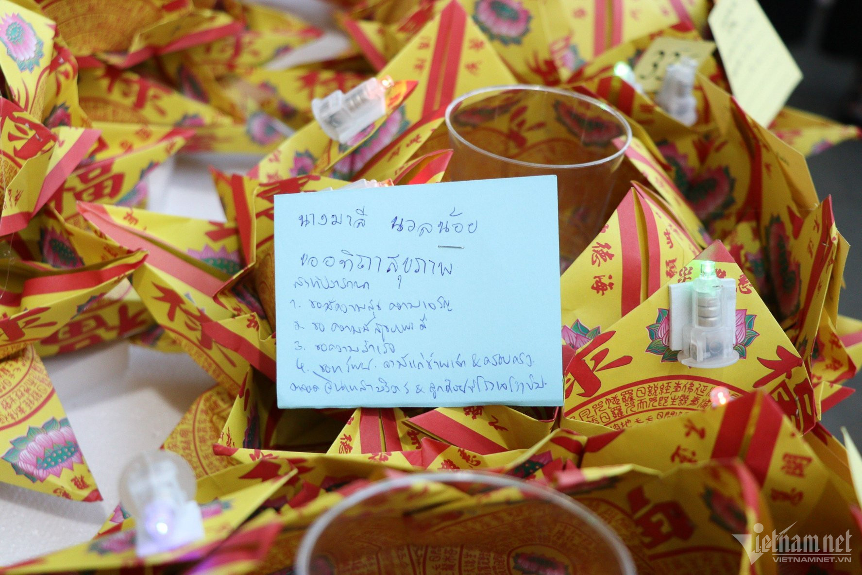 Trong đó, hàng trăm du khách nước ngoài cũng tham dự và cùng ghi lời ước nguyện của trên các hoa đăng. Hầu hết các vị khách đều tỏ ra thích thú trước nét đẹp văn hóa truyền thống độc đáo này.