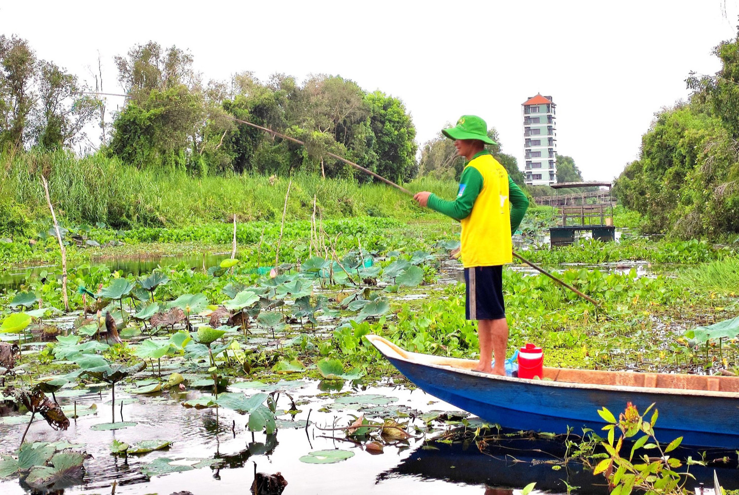 Ngoài cung đường xuyên rừng tràm độc đáo, du khách đến làng nổi Tân Lập có thể kết hợp ghé thăm và check-in tại một số điểm đến khác như tháp Quan sát, khu thuần dưỡng chim, cầu chữ X, hồ Bán Nguyệt,.. hay tham gia nhiều trò chơi dân gian thú vị như đi dây thăng bằng, bắt vịt, câu cá… Ngoài ra, bạn cũng đừng quên bỏ lỡ thưởng thức nhiều món ngon, đặc sản địa phương như cá lóc nướng trui, cá lóc chiên giòn, cháo cá,…