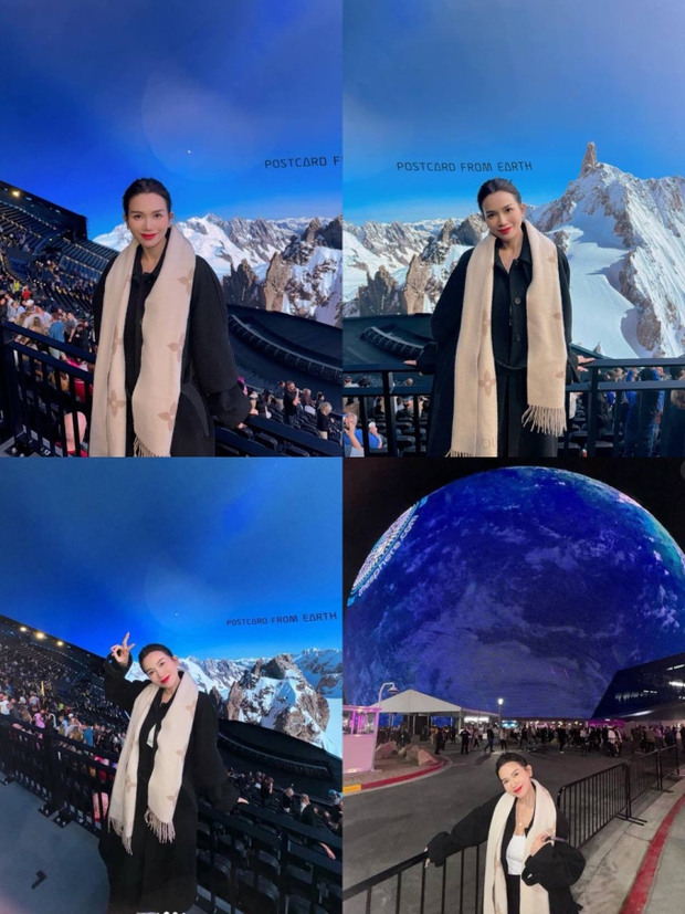 Tưởng chừng như nữ ca sĩ không đứng ngoài trend du lịch check-in với tuyết bởi trên Instagram của cô đăng tải những bức ảnh cực thơ thẩn cạnh núi tuyết trắng xóa. Thế nhưng sự thật là Sĩ Thanh chỉ sống ảo bên trong quả cầu LED MSG Sphere ở Las Vegas. Đây là công trình kiến trúc nhà hát hình cầu khổng lồ với 18.000 chỗ ngồi, sở hữu hệ thống âm thanh sống động với các tính năng 4D mang lại cho khán giả cảm giác gió và mùi hương cùng hình ảnh vô cùng chân thật.