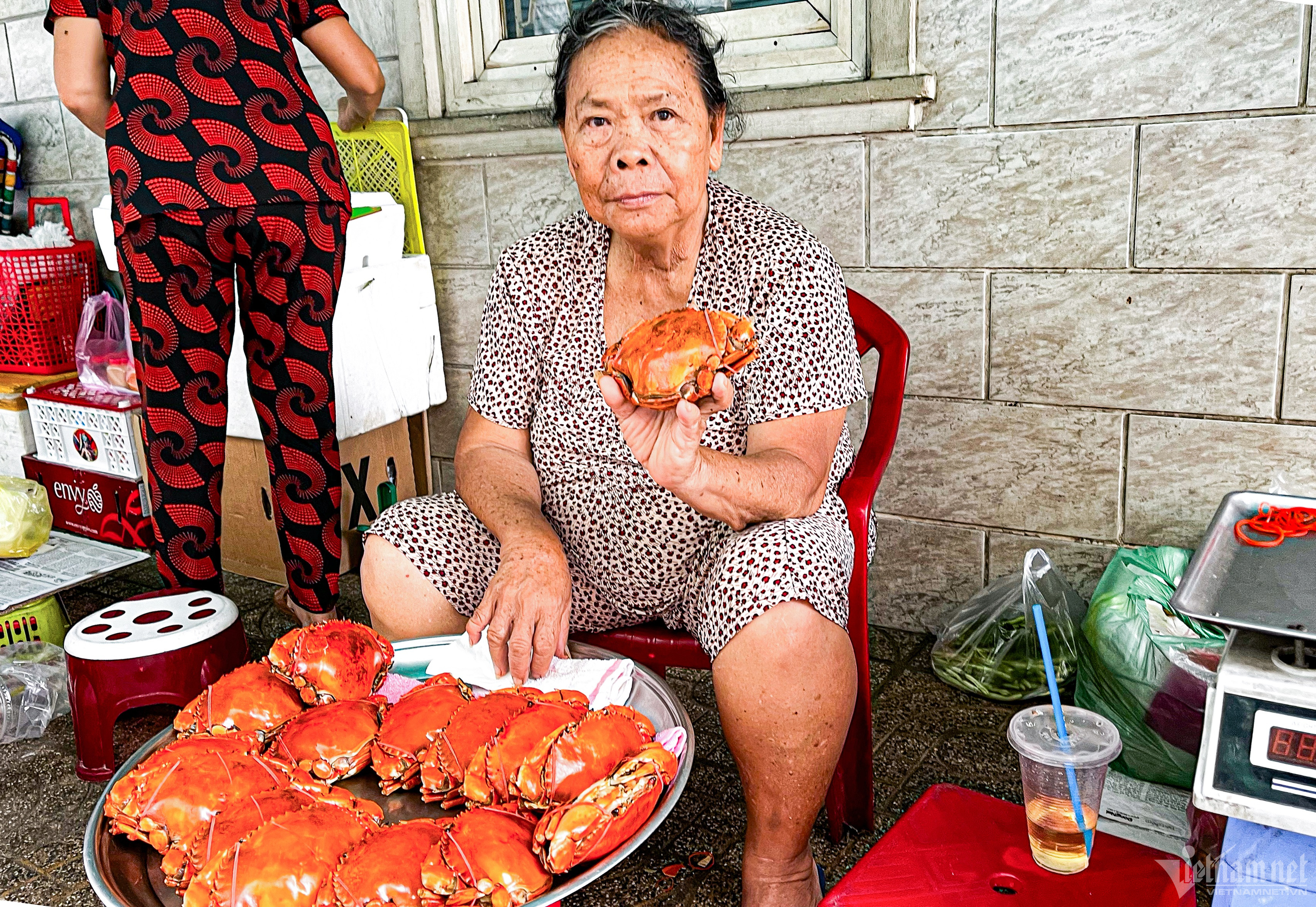 Theo bà Ba, thay vì bán từ 100-130kg cua mỗi ngày như năm 2018 thì hiện tại, cả ngày bà chỉ bán 6-7kg cua. Mâm cua bà Ba có 3 loại cua chính là cua thịt (giá 600.000 đồng/kg), cua gạch son (650.000 đồng/kg) và cua cốm (1 triệu đồng/kg). Mức giá này sẽ dao động tuỳ theo ngày, lúc cao điểm loại cua cốm được bán với giá 1,2-1,3 triệu đồng/kg.