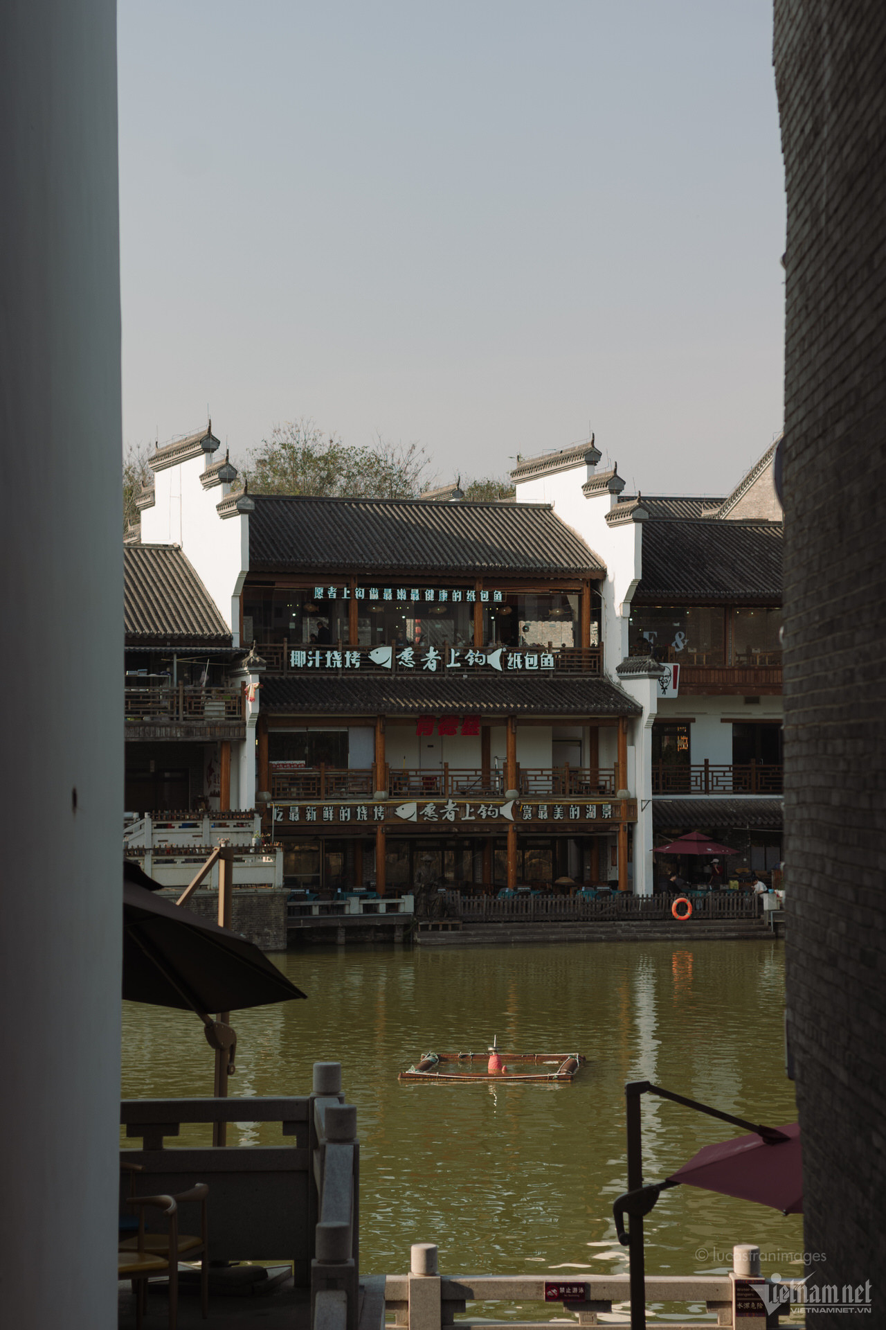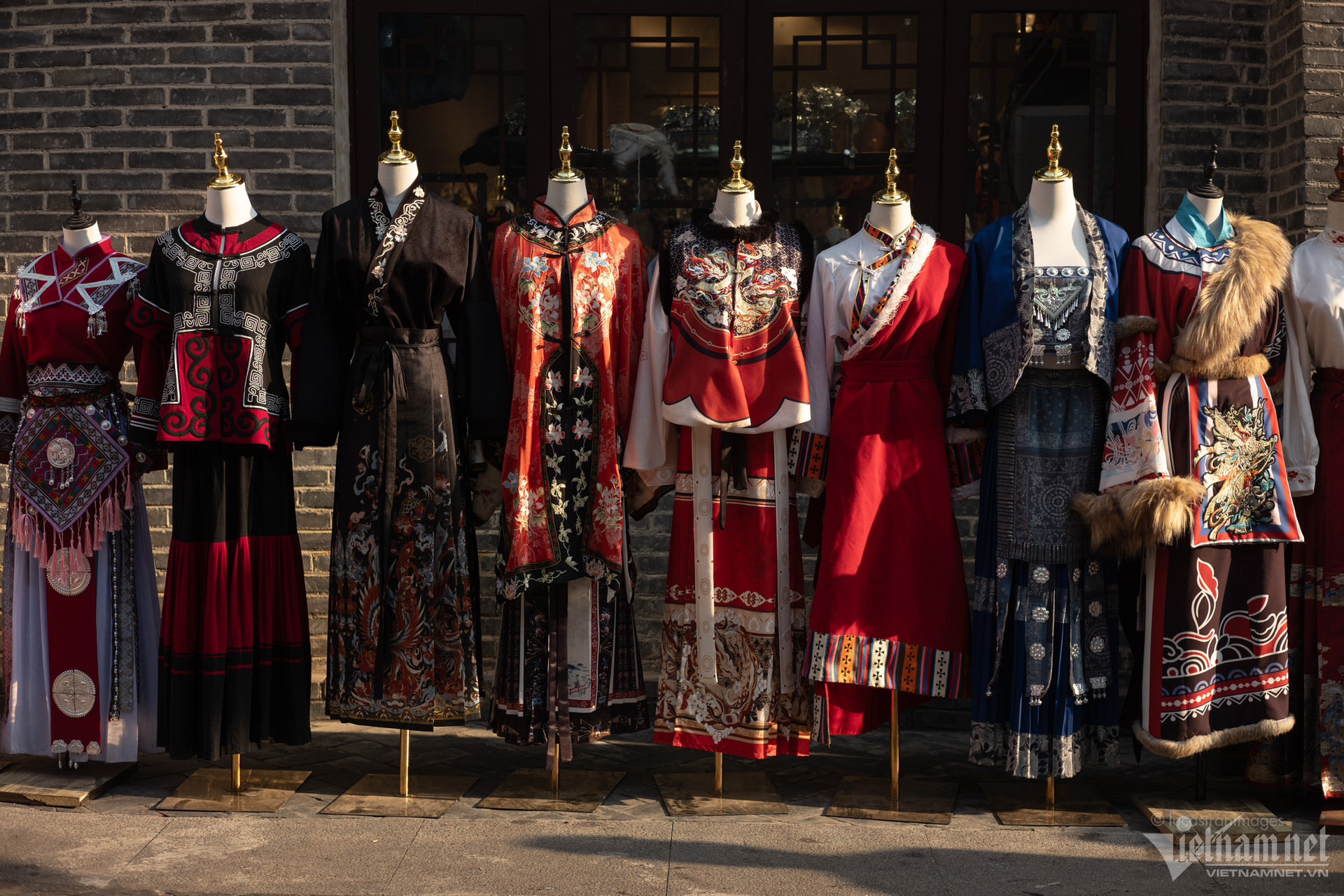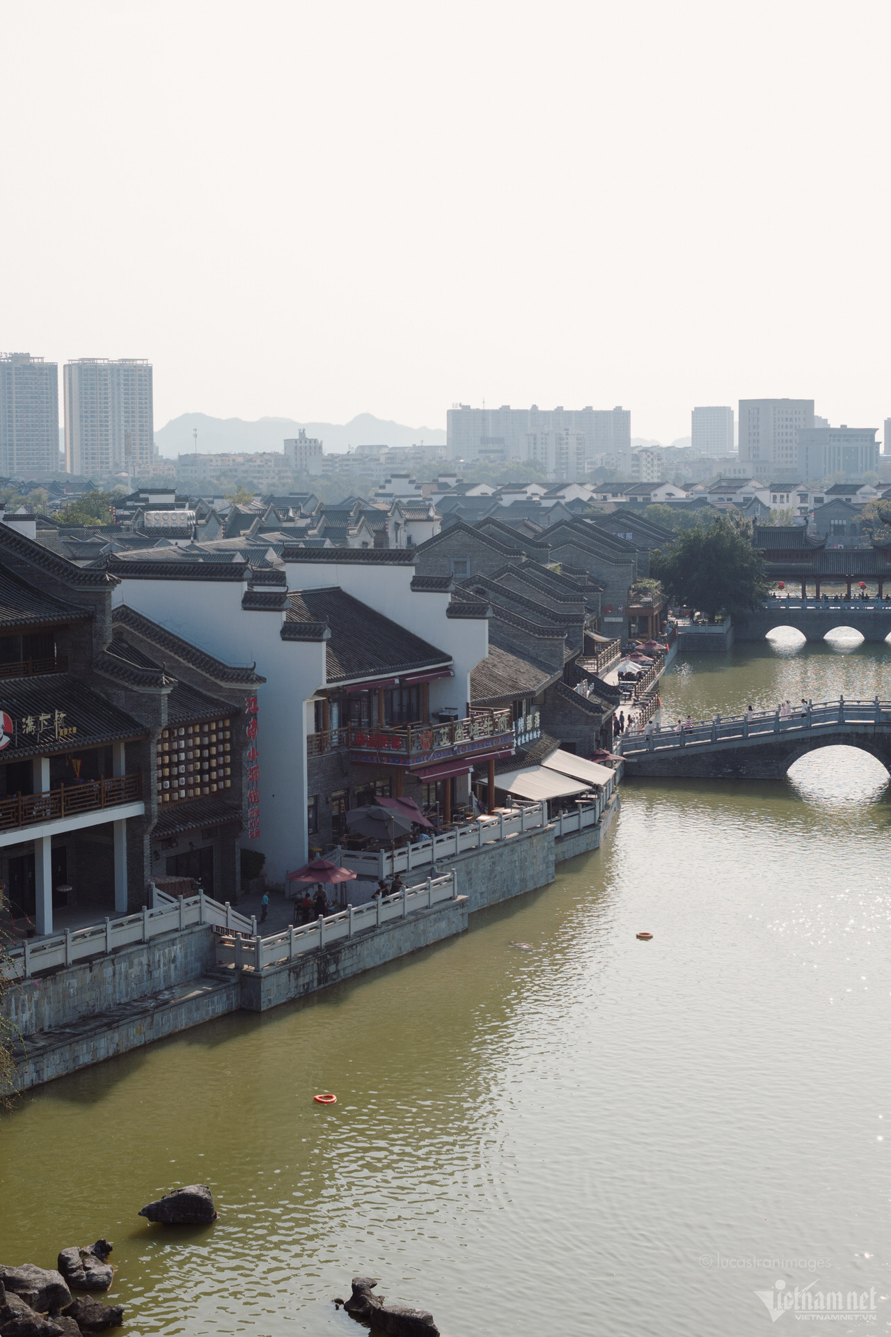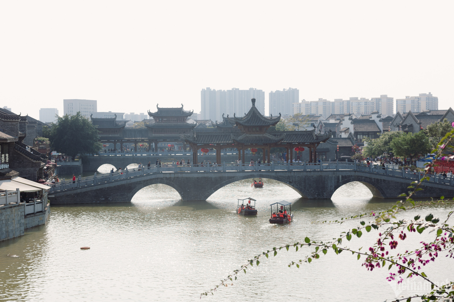 Du khách cũng có thể ngồi thuyền đi dạo trên sông để ngắm nhìn toàn cảnh cổ trấn xinh đẹp, hay thuê những bộ trang phục dân tộc được may cầu kì, rực rỡ để chụp ảnh, check-in.