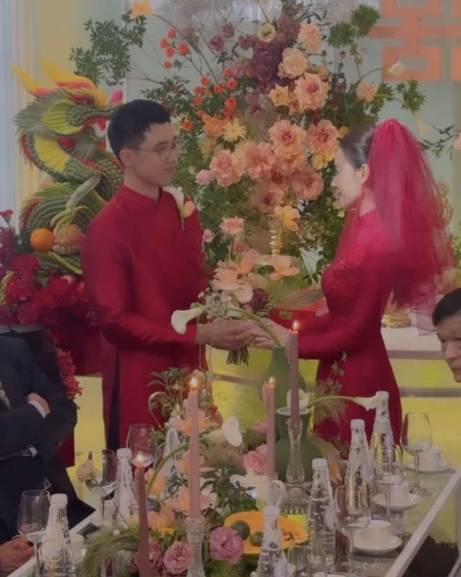 Một số ý kiến cho rằng, do đây là tiệc đám hỏi nên cặp đôi lựa chọn khá đơn giản, nhanh gọn. Có lẽ tiệc cưới của cặp đôi tới đây mới thật sự "bùng nổ" bởi các món sơn hào hải vị hấp dẫn, đẹp mắt, khiến dân tình trầm trồ.