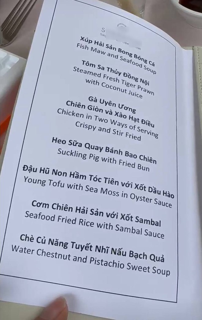 Sau khi tổ chức tại nhà, cặp đôi đã chiêu đãi các quan khách bữa tiệc tại một khách sạn 5 sao vô cùng nổi tiếng tại TP. HCM. Rất nhanh chóng, menu bữa tiệc cũng gây được sự chú ý.