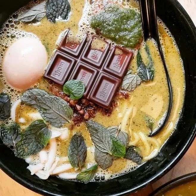 Món mì đặc biệt này có tên là King Ramen. Đúng như tên gọi của nó, đó là một sự kết hợp thú vị giữa “vua các loại trái cây” và mì ramen tonkotsu. Món ăn này được quảng cao như một “quả bom” làm bùng nổ vị giác của thực khách, khiến họ thỏa mãn cơn thèm của mình.