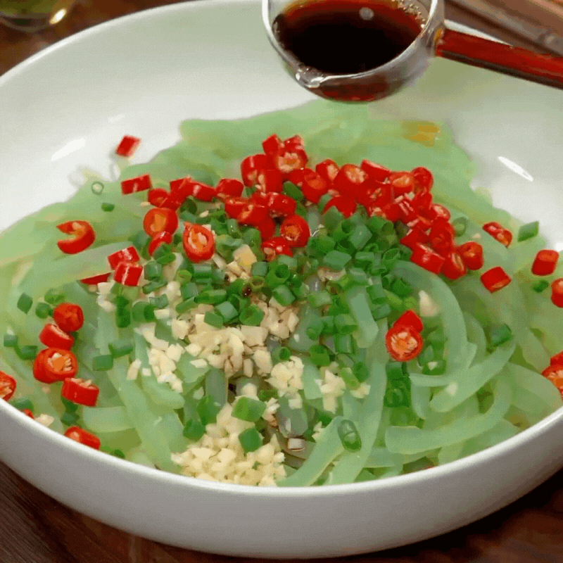 - 2 thìa tỏi băm, 2 thìa hành xanh thái nhỏ, 3 thìa nước tương, 1 thìa giấm táo, 1 thìa cà phê ớt thái nhỏ (có thể bỏ qua hoặc giảm lượng ớt nếu không ăn được cay), 1/3 thìa cà phê muối, 1/2 thìa cà phê đường, 1/3 thìa cà phê hạt nêm (có thể bỏ qua), 1 nhúm rau mùi thái nhỏ.