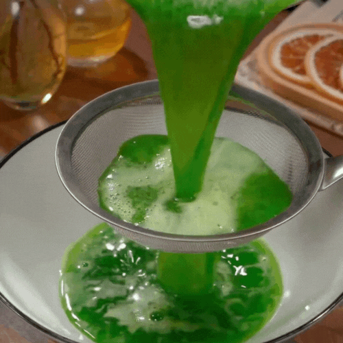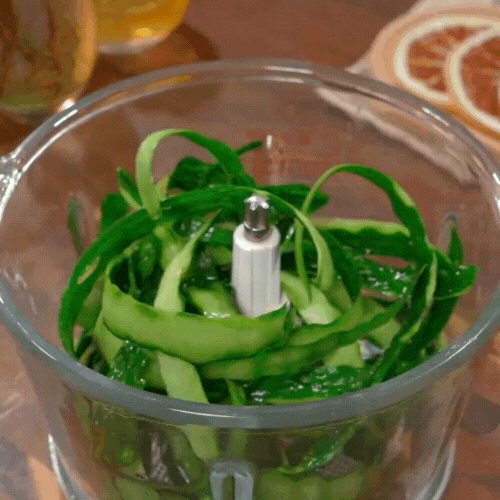 Bước 1: Dưa chuột mang rửa sạch, gọt vỏ. Phần ruột có thể mang ăn trực tiếp hoặc làm salad. Phần vỏ cho vào máy xay sinh tố cùng với 300ml nước. Xay nhuyễn sau đó lọc lấy nước cốt.