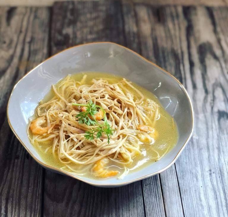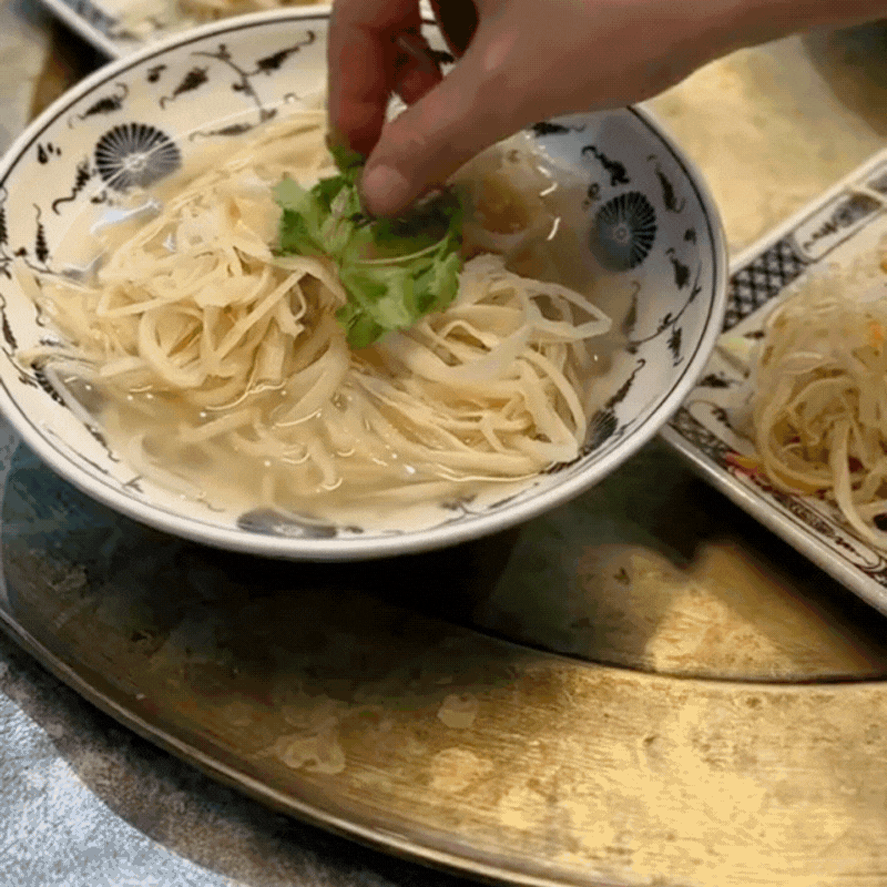 Trong kênh Tiktok của mình, nữ diễn viên Phương Oanh cũng háo hức chia sẻ món ăn độc đáo này. Mặc dù đang mang thai nặng nề nhưng sự thơm ngon của cặp đôi món ăn này khiến nữ diễn viên không ngại "lăn xả" nhiều giờ đồng hồ để chế biến món ngon chiêu đãi ông xã. Đầu tiên, măng sợi mang luộc qua với 2 - 3 lần nước rồi để ráo. Làm sạch mực với rượu gừng và bia. Su hào, cà rốt thái sợi. Nước dùng sẽ sử dụng nước luộc gà và tôm he sẽ "bao ngon, bao ngọt".