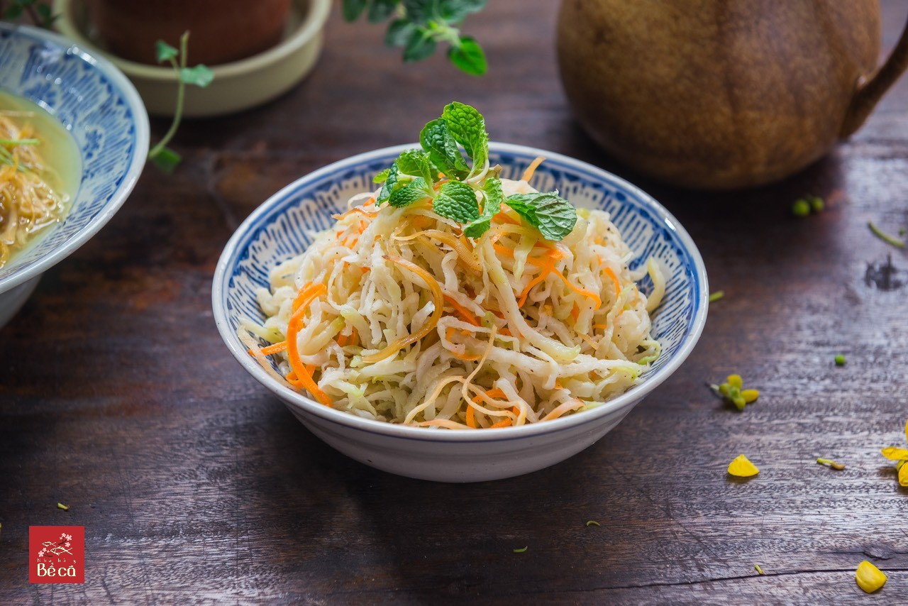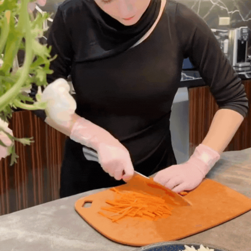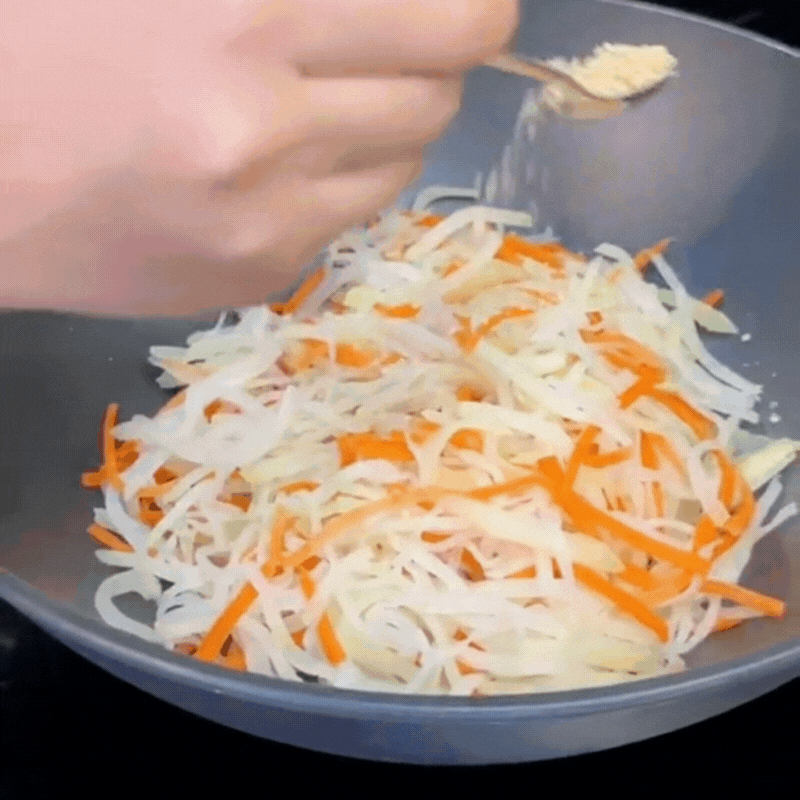 Để su hào, cà rốt luôn giữ được độ giòn ngon là sau khi thái sợi, mang chần qua với nước sôi và xả sạch với nước lạnh. Vắt kiệt nước.