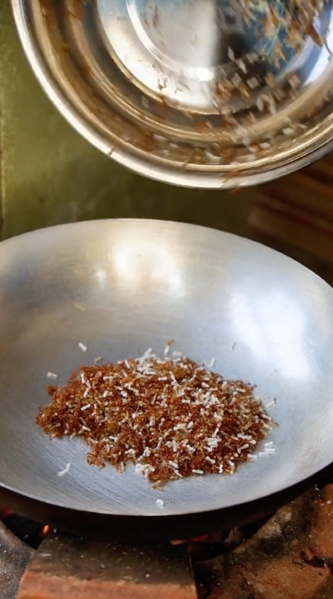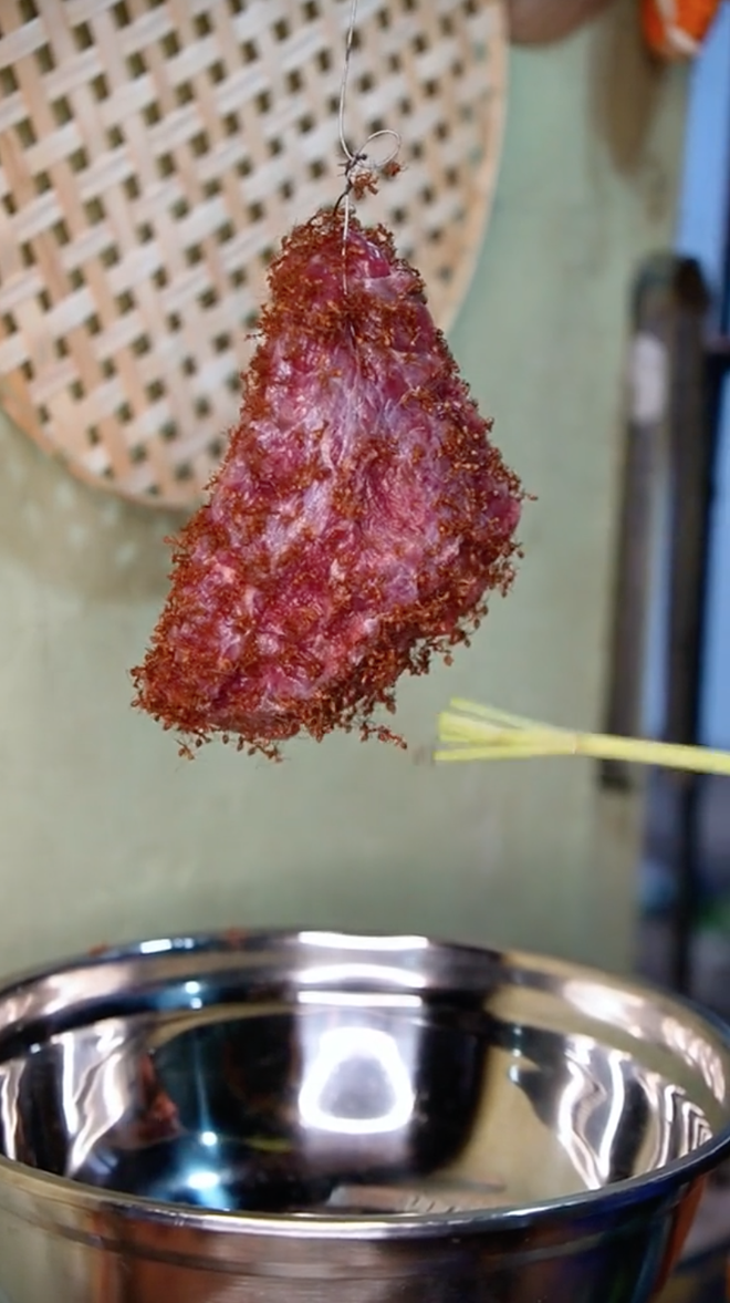 Kiến sau khi bắt về sẽ được cho vào một chiếc túi lớn rồi thả miếng thịt bò tươi vào trong. Cũng có khi, thay vì cho kiến vào túi, người ta sẽ treo miếng thịt ở gần ổ kiến. Thấy mùi thịt, kiến sẽ bò đến và đốt kín xung quanh miếng thịt. Sau một khoảng thời gian, người ta mang thịt đi nướng, còn những con kiến sẽ được tách riêng ra, rang lên để làm muối chấm.