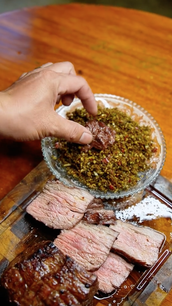 Theo miêu tả, khi làm theo kiểu này, thịt bò nướng thơm mềm, mọng nước chấm cùng muối tiêu chanh hoặc muối trộn kiến vàng giúp món ăn càng thêm dậy vị. Nếu có cơ hội, hãy thử thưởng thức món ăn đặc sắc này nhé!