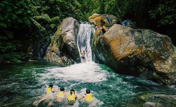 Để khám phá con suối, du khách buộc phải trekking (theo hình thức đi bộ leo núi) qua những mỏm đá bám đầy rêu hay bơi qua các hồ nước xanh trong lành, mát lạnh.