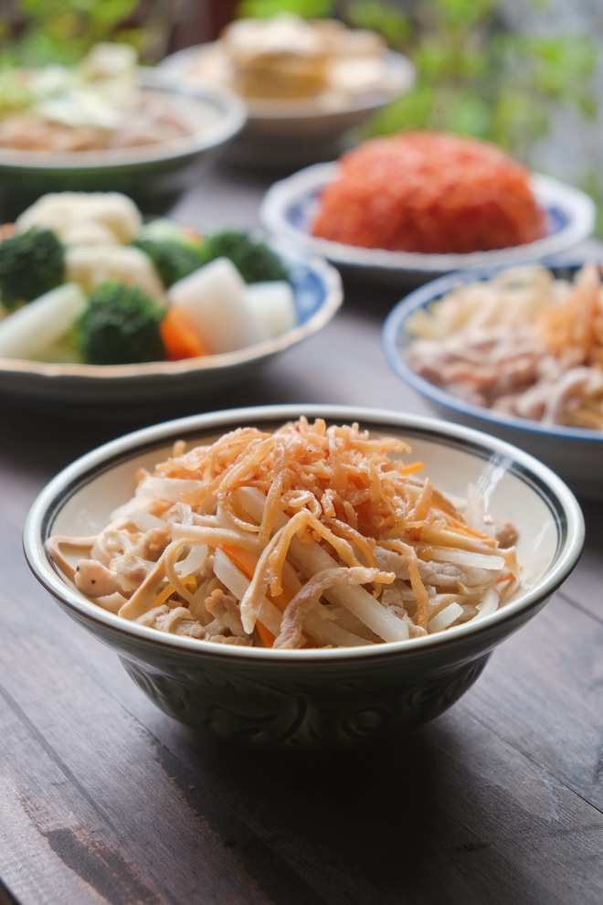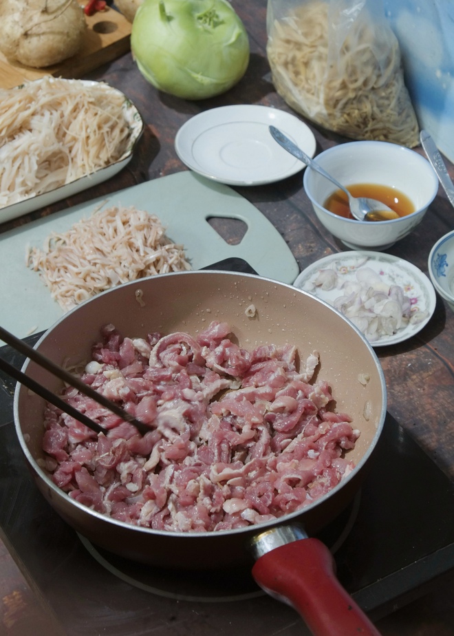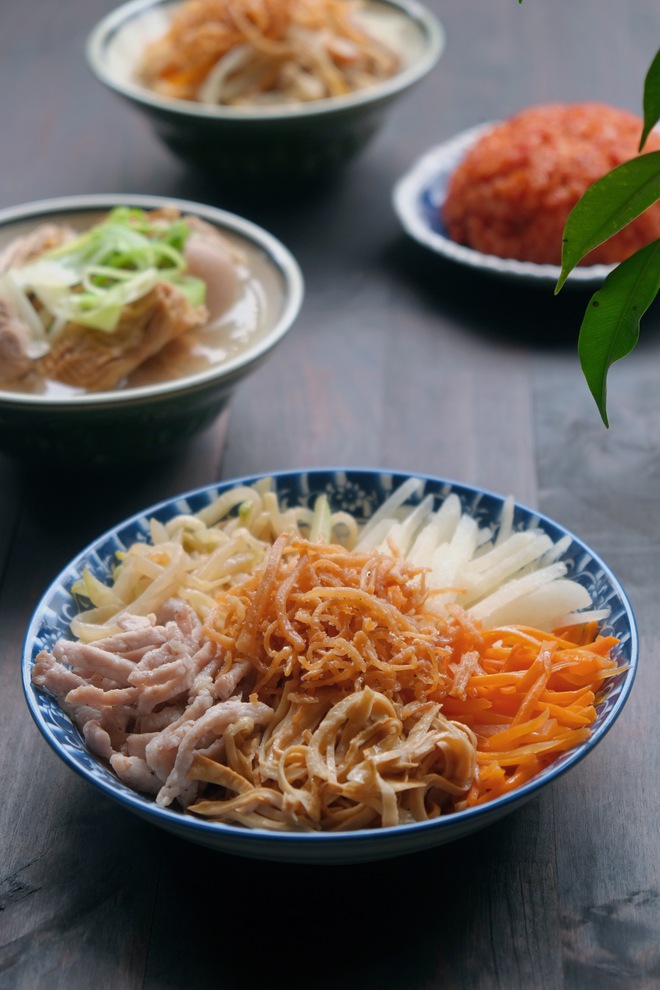 Và đây cũng là phần mà các nàng dâu, các cô con gái ám ảnh nhất khi nhà có cỗ. Dùng nạo bào sợi là vứt! Tất cả phải được thái thật nhỏ bằng dao, đảm bảo tối đa nguyên liệu được giòn mà vẫn phải nguyên vẹn và đẹp mắt. Cái bào tiện đấy, nhưng nước trong củ quả sẽ hao dần theo từng vát bào quá lực, khiến cho các nguyên liệu sẽ dễ bị dai và nhũn. Thường, người ta mất tới 1 đêm trước ngày nấu cỗ chỉ để chuẩn bị những nguyên liệu kể trên.