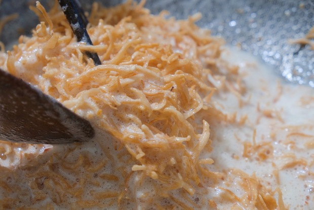 Bước nấu, sẽ chỉ được làm khi gần đến giờ ăn cỗ, vì yêu cầu của món ăn là phải nóng! Đơn giản là đem từng thứ xào riêng rồi cho một ít nước dùng gà vào đun cho ngấm.