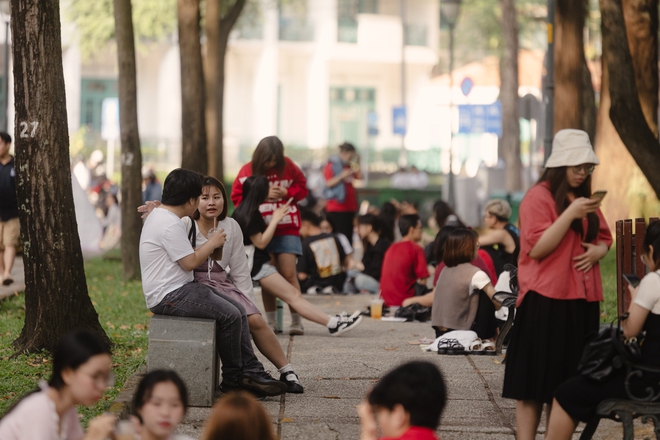 Khác hẳn vẻ ồn ào, vội vã và tấp nập hằng ngày, ngày đầu năm mới 2024 tràn ngập phố phường TP.HCM là sự yên bình, nhẹ nhàng, gương mặt ai cũng rạng rỡ những niềm vui hân hoan. Thời tiết tại TP.HCM hôm nay lại mát mẻ, dễ chịu lạ thường, cũng vì thế mà các bạn trẻ hào hứng "lên đồ" rủ nhau ra đường đi chơi Tết dương lịch. Với thời gian nghỉ lễ ba ngày, tưởng như mọi người sẽ đổ xô đi du lịch, thế nhưng có thể thấy phần lớn ai nấy đều chọn ở lại thành phố nghỉ ngơi, thảnh thơi dạo quanh những nẻo đường quen thuộc.