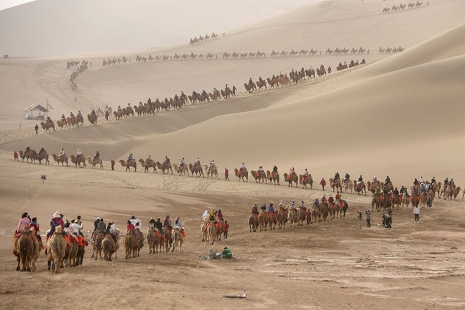 Đôn Hoàng (Cam Túc) - thành phố cát có khí hậu khắc nghiệt với những đồi cát dài vô tận cũng trở thành điểm đến của rất nhiều du khách tại Trung Quốc trong dịp nghỉ lễ. Nhiều khách du lịch đến Đôn Hoàng để tìm hiểu văn hóa và phong tục nơi con đường tơ lụa đi qua.