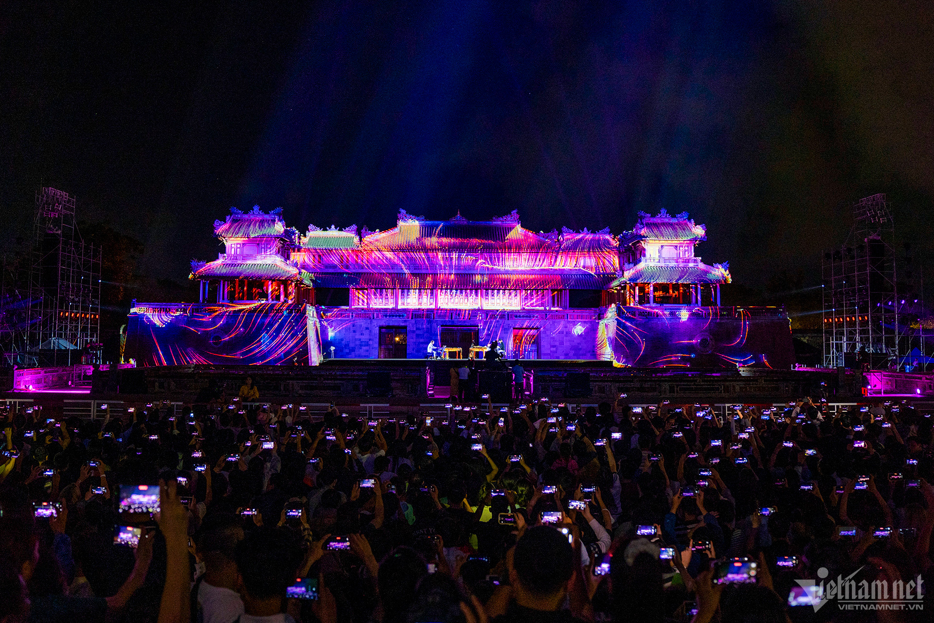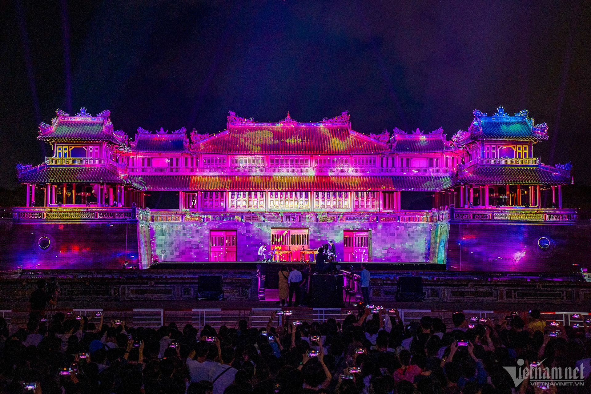 Buổi trình diễn âm thanh và ánh sáng đặc sắc mang tên 'Huế by Light - The Live Show' vừa diễn đêm 12/12 tại quảng trường Ngọ Môn - Đại nội Huế.