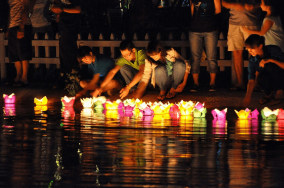 Mỗi dịp Trung thu, người dân Sài Gòn lại nô nức tụ họp ở công viên Lê Thị Riêng để tham gia vào hoạt động thả đèn hoa đăng đặc sắc. Nằm trong trung tâm thành phố, công viên có không gian rộng lớn được bao phủ cây xanh nên thu hút đông đảo các cặp đôi, các bạn trẻ cũng như các gia đinh có trẻ nhỏ đến đi dạo, tập trung vui chơi, thả đèn và chụp lại những bức ảnh đẹp trong không gian hồ nước lung linh ngập tràn ánh đèn hoa đăng.