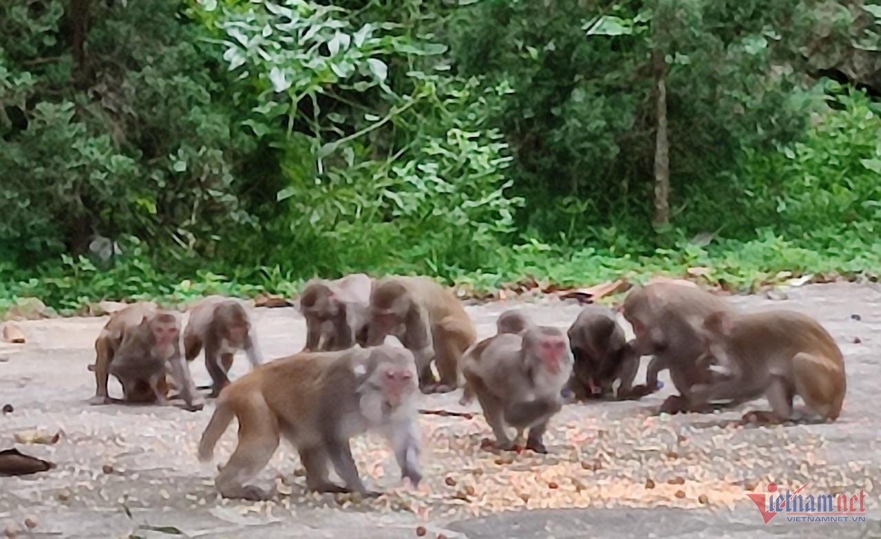 “Ngày nào tôi cũng cho ăn, mỗi bữa cho ăn cũng hết hơn một yến ngô hạt. Lâu dần thành quen, cứ đến giờ quy định là đàn khỉ lại xuống chùa, ăn xong chúng lại lên núi.