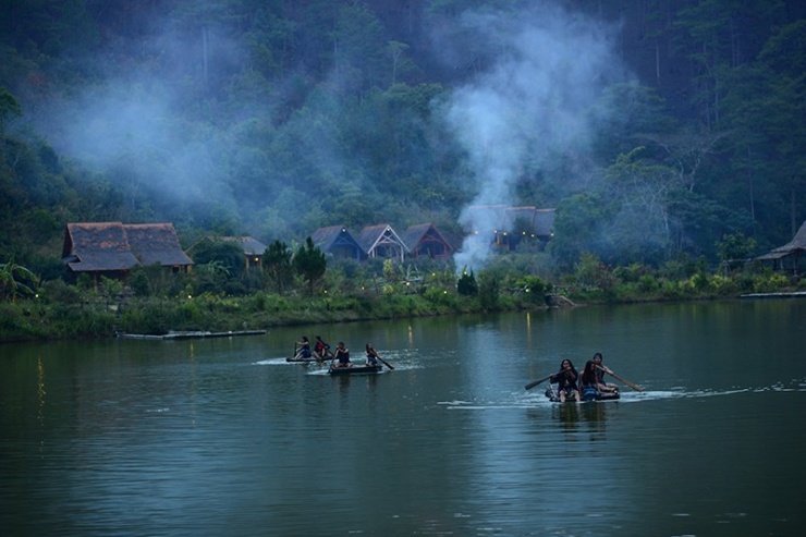 Du khách thường chèo bè trên hồ vào buổi sáng sớm để có cảm giác như lạc vào cõi thần tiên giữa chốn nhân gian, như một câu chuyện cổ tích.