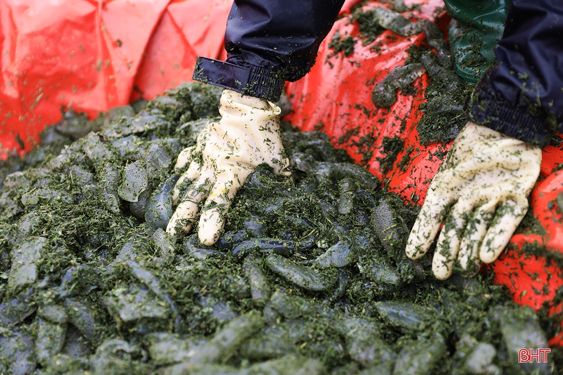 Ở nhà máy thì người ta sẽ bỏ phèn, có máy đánh cho ra nhớt. Còn chúng tôi làm thủ công thì theo cách ông cha nhiều đời truyền lại, cứ ném ra bãi biển mà chà cát thôi. Không làm vậy thì tanh lắm, ăn không nổi đâu".