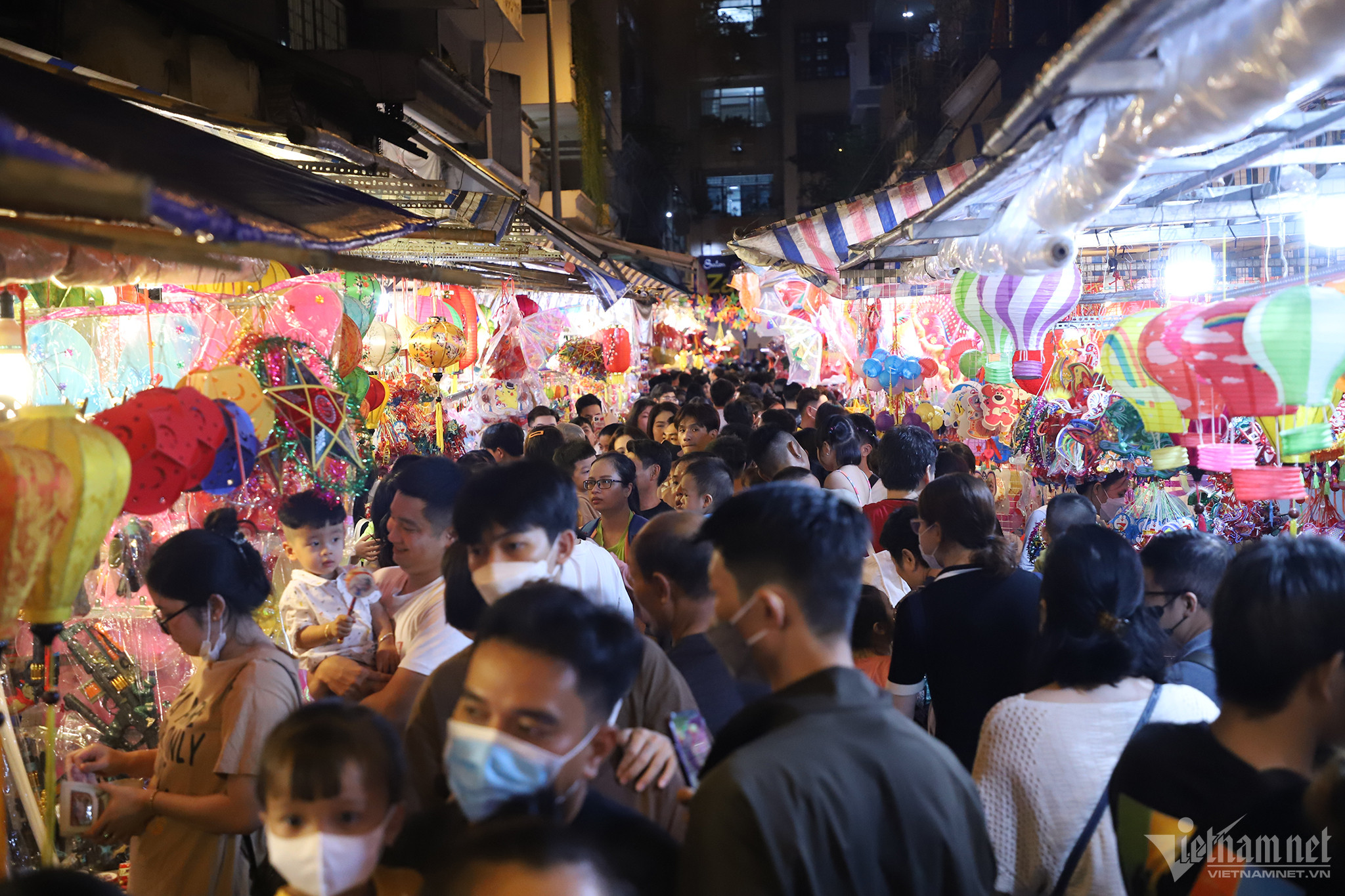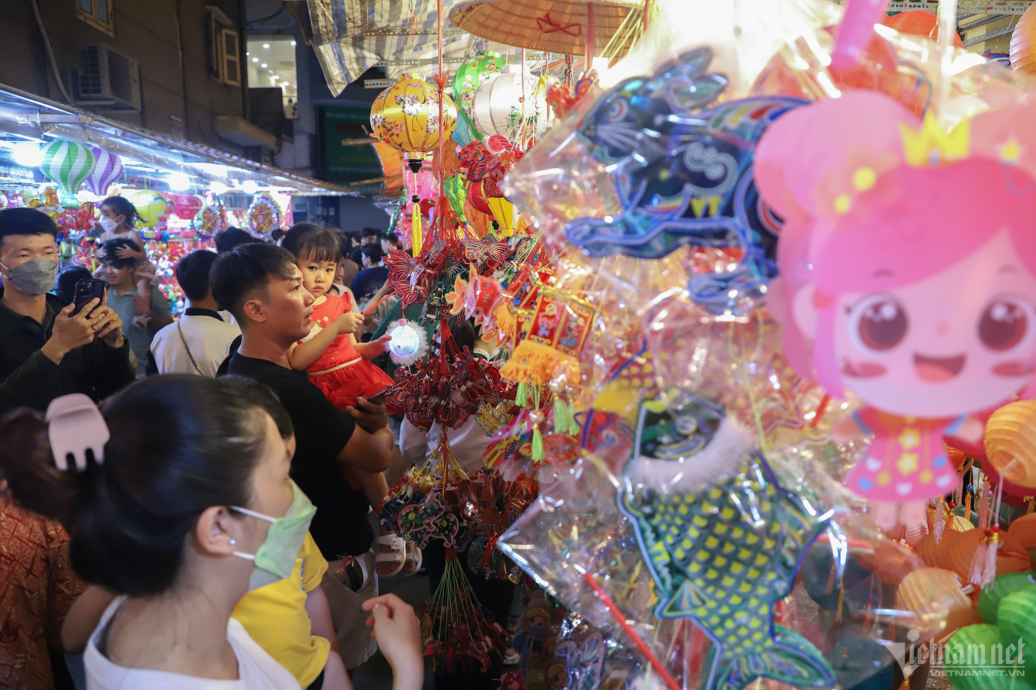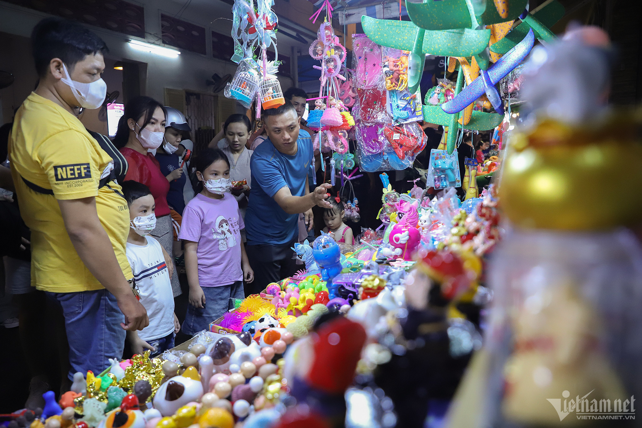 Tối 26/8, tuyến phố Lương Nhữ Học rất đông khách. Theo chia sẻ của nhiều tiểu thương, doanh thu bán hàng chưa mấy khả quan. Mọi người thường chỉ đi dạo thay vì mua đồ chơi Trung thu mang về.