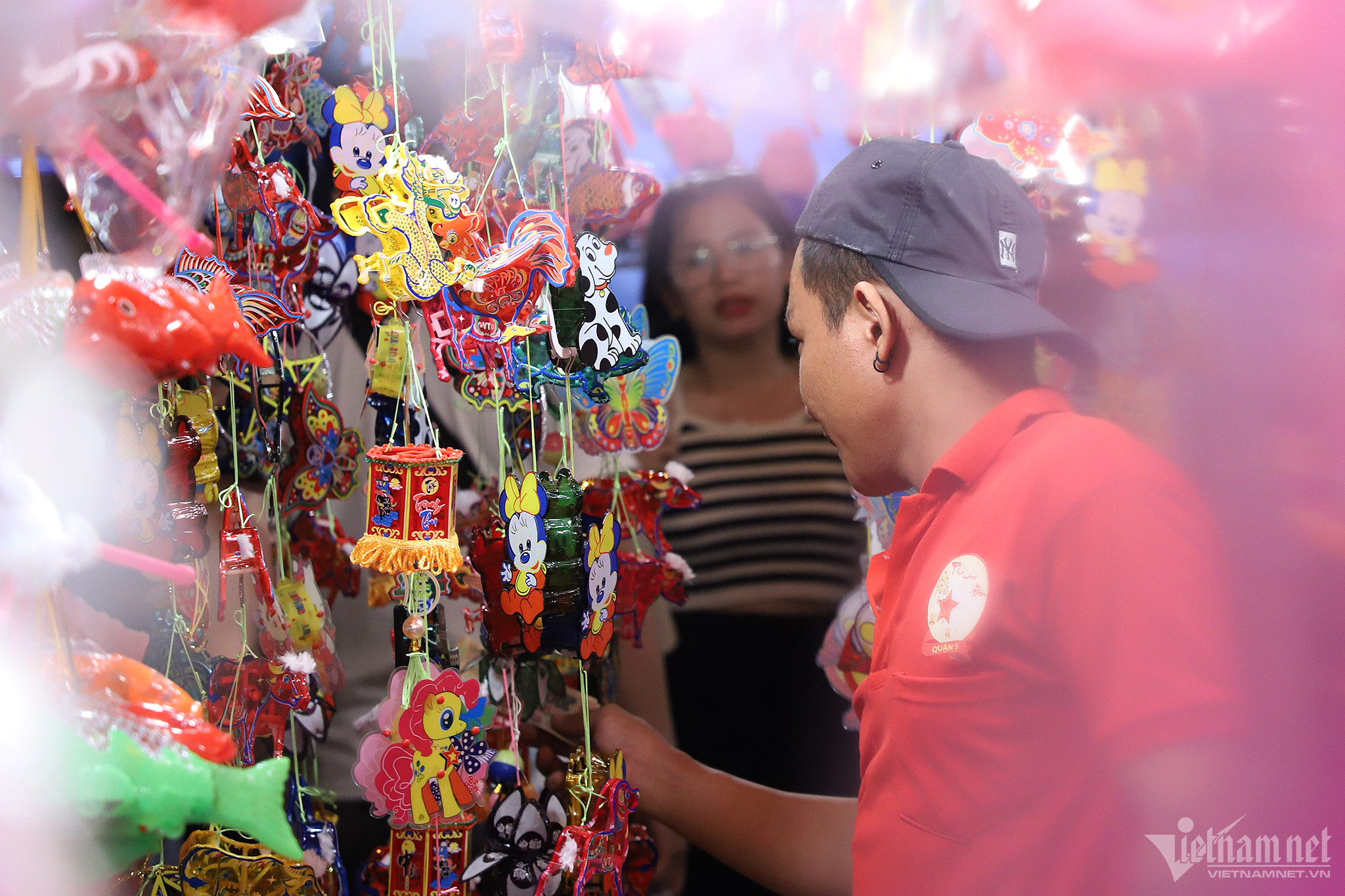 "Hàng trăm khách tới xem quầy hàng, có được mấy người mua đã là may mắn rồi. Mọi người chủ yếu thích xem lồng đèn và cho trẻ em trải nghiệm không khí Tết Trung thu ở đây", ông Sang, người có hơn 20 năm bán lồng đèn tại phố Lương Nhữ Học, chia sẻ.
