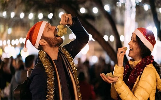 Nochevieja, hay "đêm cũ" là từ chỉ ngày cuối cùng của năm trong tiếng Tây Ban Nha. Khi thời khắc này gần qua, hàng triệu người dân “xứ sở bò tót” tập trung trước tivi hoặc quảng trường để đón năm mới và ăn 12 quả nho xanh.