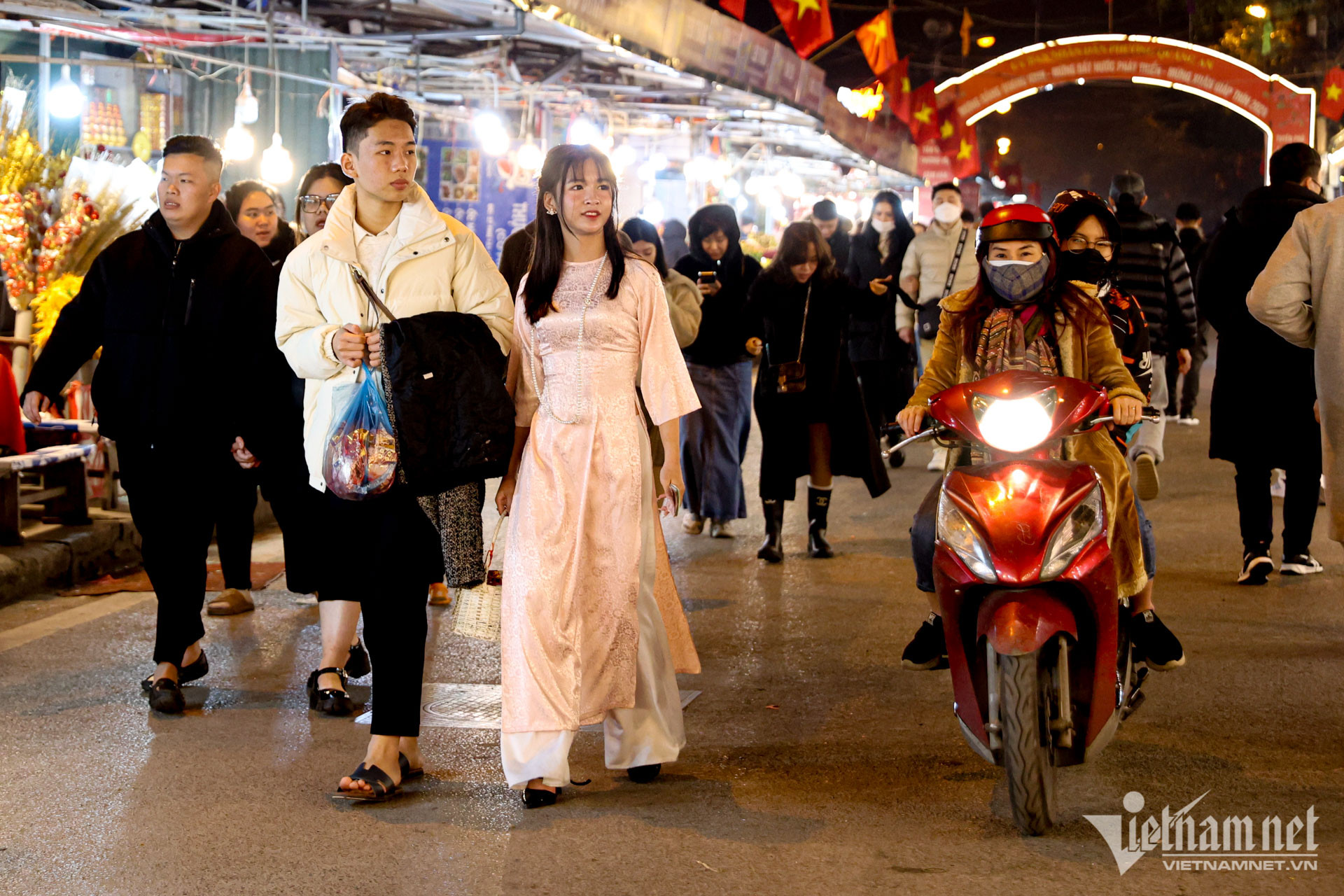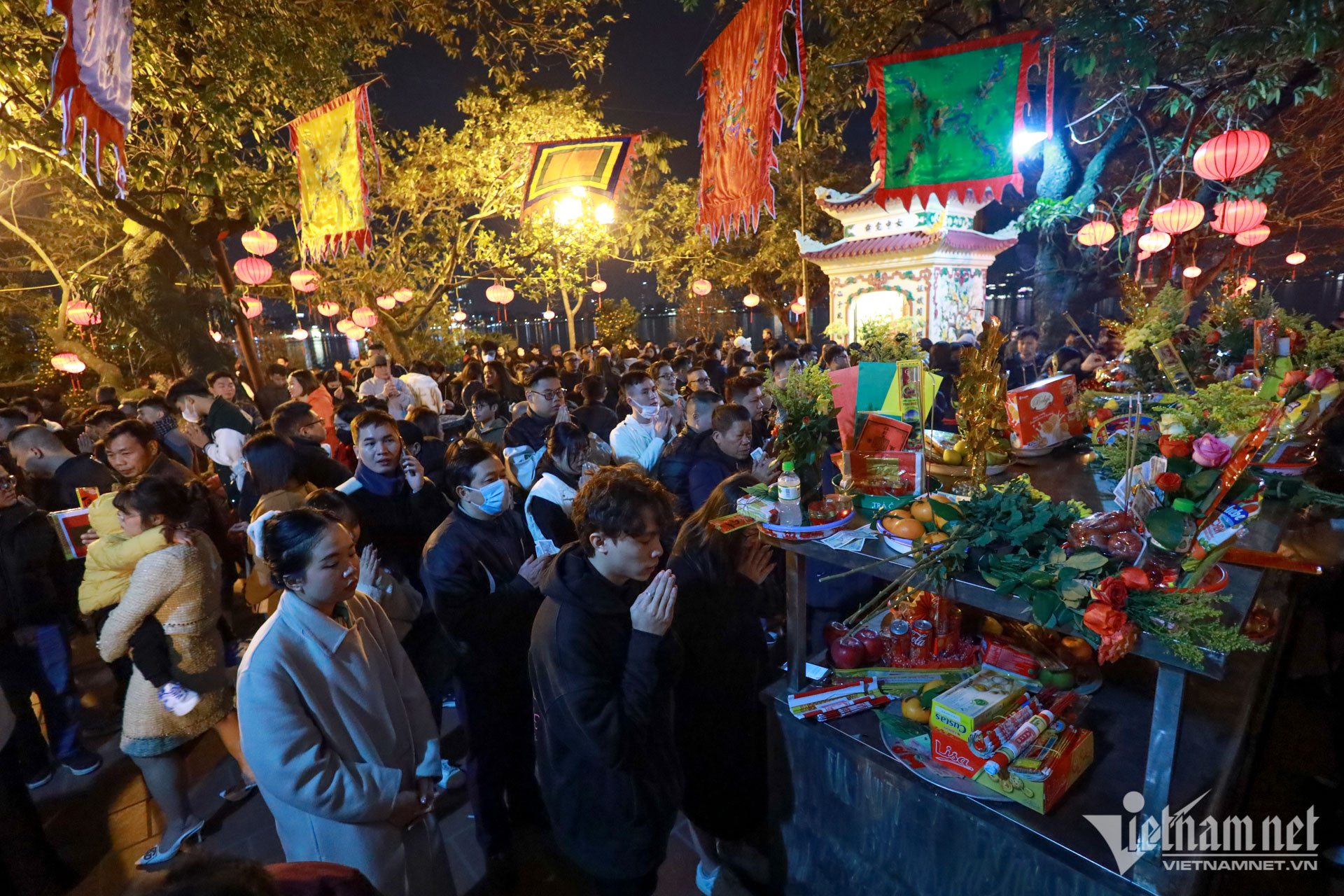 Thời điểm 0h30 mùng 1 Tết, dòng người liên tục đổ về khiến cho lối vào Phủ Tây Hồ đông như ngày hội.