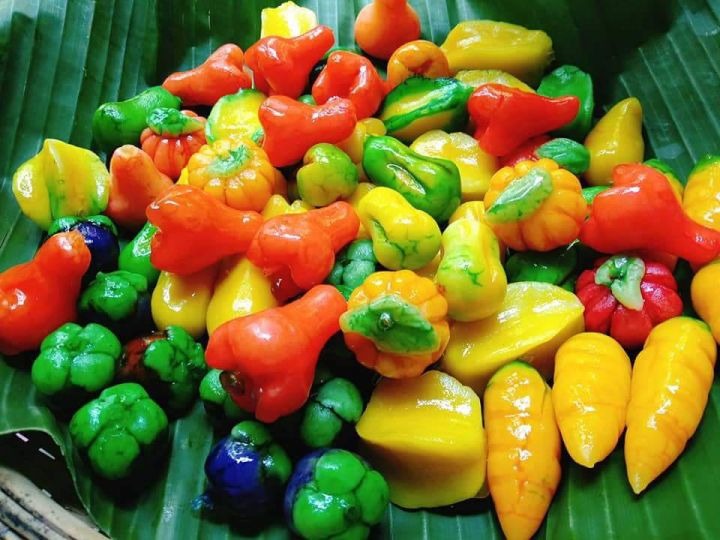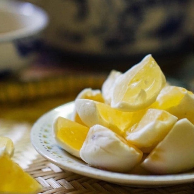 Bột bánh “quý tộc” được làm từ đậu xanh, thạch và màu thực phẩm. Sau khi trộn bột, người thợ phải dùng tay nặn ra hình dáng các loại củ, trái cây phổ biến như cam, mận, táo, ớt,… Cách thưởng thức bánh đậu xanh trái cây đúng Huế phải vừa uống trà, vừa ăn bánh và hàn huyên, tâm sự.