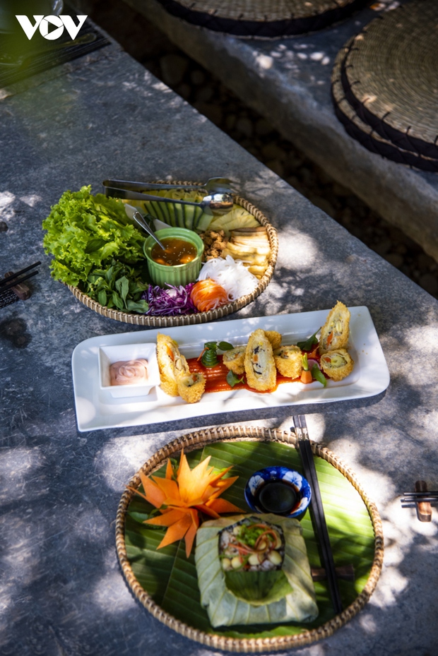 Các món chay tại An Nhiên Garden được chế biến dựa trên nền ẩm thực tinh hoa của Huế, với sự biến tấu, trang trí tinh tế, hòa quyện chút hồn trẻ trung, sôi động để tạo ra những bữa ăn không chỉ dinh dưỡng mà còn đẹp mắt.