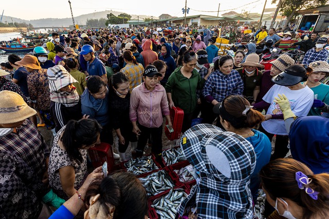 Mực nháy sau khi được câu về sẽ được người dân tập trung bán tại tuyến đường lên đảo Lan Châu, thuộc phường Nghi Thủy vào mỗi buổi tối. Càng về khuya, ‘phiên chợ’ càng tấp nập người dân, du khách tới mua, xem, hóng mát và livestream cho bạn bè phương xa xem cùng.