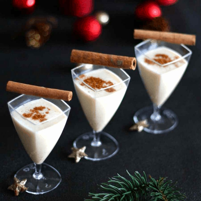 Eggnog ra đời vào thế kỉ XVII tại Anh quốc, chỉ dành cho giới thượng lưu vì sự đắt đỏ của rượu và bia. Tuy nhiên, đến đầu thế kỉ 19, nó đã vượt Đại Tây Dương đến Mỹ, đồng thời được biến tấu với rượu rum để trở thành một trong những món thức uống được yêu thích vào dịp lễ Giáng sinh. Loại cocktail này thường được làm từ lòng đỏ trứng kết hợp với sữa, kem pha với quế, hạt nhục đậu khấu và có thể kết hợp thêm rượu brandy, rum hay whiskey.