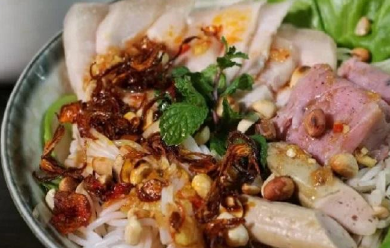 Đây cũng là món ăn quen thuộc và là một món ngon nổi tiếng của ẩm thực Đà Thành được nhiều thực khách ưa thích. Thực ra, đây là món ăn phổ biến của người miền Trung, song tại thành phố biển này nó mang một vị đặc trưng rất riêng. Đối với ai chưa từng thử qua có lẽ sẽ cho rằng nó rất mặn. Nhưng ăn rồi thì chỉ có nuốt nước miếng ừng ực them thuồng. Nào là thịt luộc, thịt heo quay, mít trộn. Cùng chút sa tế cay nồng, mùi rau thơm phảng phất, chút lạc rang thơm bùi…