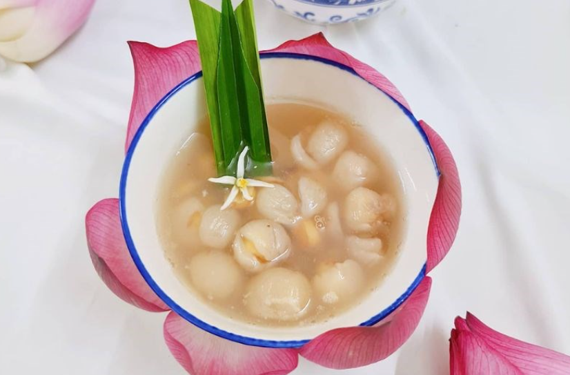 Tiếp tục là một món ăn có "rồng" trong tên, chè hạt sen long nhãn là sự hòa quyện của trái nhãn ngọt thanh mát và hạt sen bùi mềm, có độ ngọt tự nhiên, ăn rất vừa miệng. Chè sau khi nguội có thể cho vào ngăn mát tủ lạnh thì ăn sẽ ngon hơn.