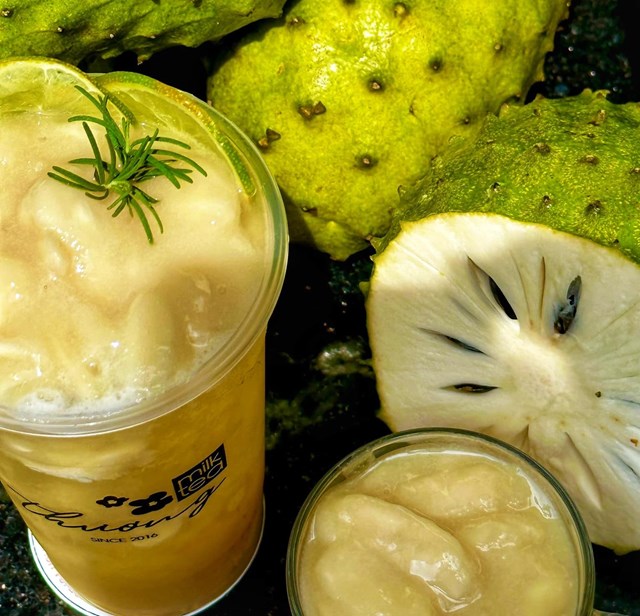 Cũng trong tháng 4, trà mãng cầu cũng khiến cho nhiều thực khách "chao đảo", dễ thấy nhất trên các tuyến đường lớn như Quang Trung (quận Gò Vấp), Phạm Văn Đồng (quận Bình Thạnh), Phan Đăng Lưu (quận Phú Nhuận)..., giới trẻ chen lấn xếp hàng để mua cho bằng được.