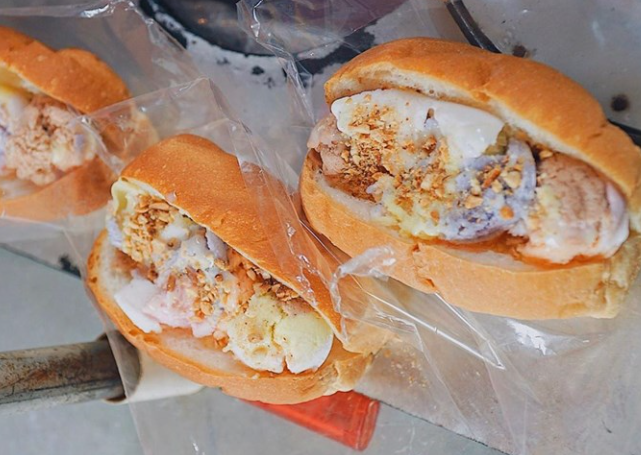 Cũng tương tự như bánh mì chấm sữa đặc, món bánh mì kẹp kem khá phổ biến ở miền Tây, nơi ưa chuộng những món ăn ngọt. Vị mềm thơm của lớp vỏ bánh mì cùng phần kem lành lạnh, có chút beo béo của lớp đậu phộng và sữa đặc. Tất cả hòa quyện vào nhau khiến cho món ăn trở nên hấp dẫn hơn và mang đến hương vị khó phai.