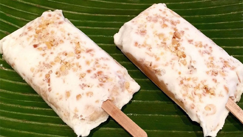 Đây cũng là món ăn được nhiều người ưa thích vì ngon và rẻ. Kem chuối được làm từ những quả chuối vừa chín tới, người ta sẽ chọn những quả ngon nhất đem bỏ vỏ, ép thành miếng dẹp. Thêm chút đường, đậu phộng rang, nước cốt dừa, dừa sợi,… rồi bỏ vào túi nilon, đem cất đông trong tủ lạnh, tạo nên hình dáng dẹp đặc trưng không giống bất kì loại kem nào khác.