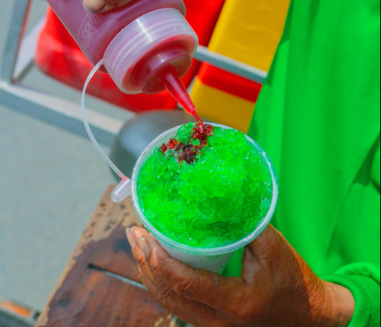 Vào những ngày hè nóng như đổ lửa, si rô đá bào dường như là món giải khát yêu thích nhất của giới học sinh miền Tây. Món ăn này chỉ đơn giản là phần nước đá được bào mịn, thêm bên trên là các loại si rô đủ màu sắc và một chút sữa ngọt là đủ để xua tan đi cái nóng giữa trưa.